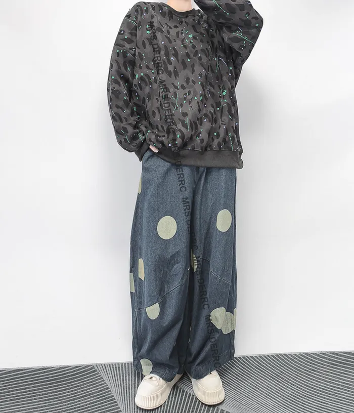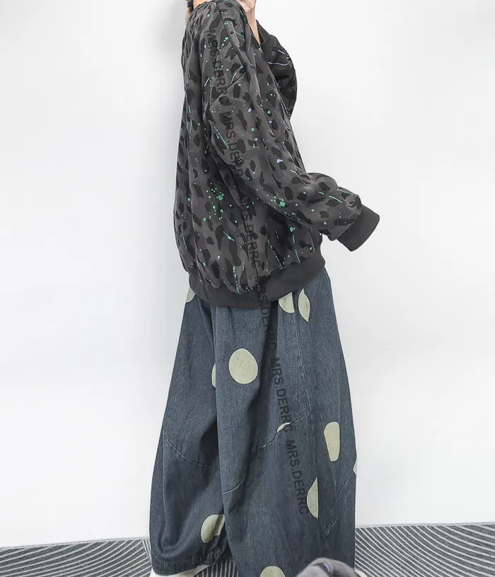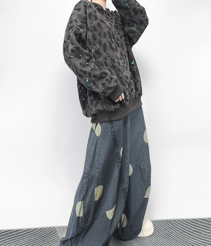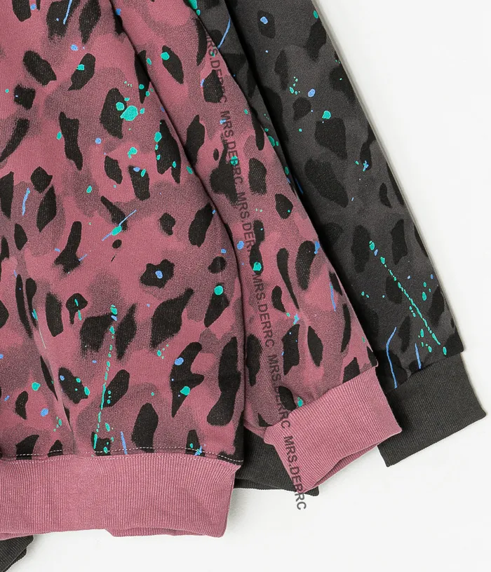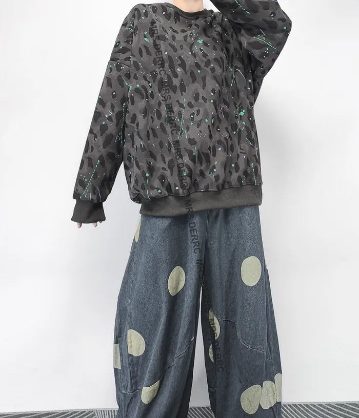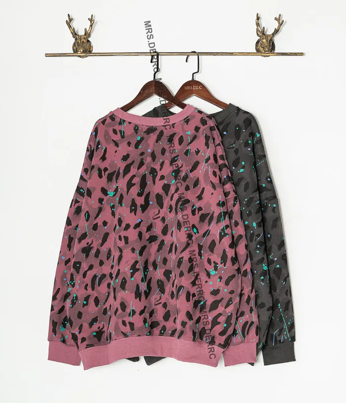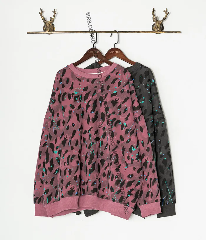 棉混紡潑漆豹紋寬鬆上衣(灰色)