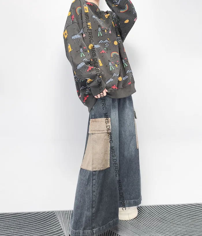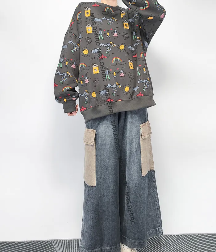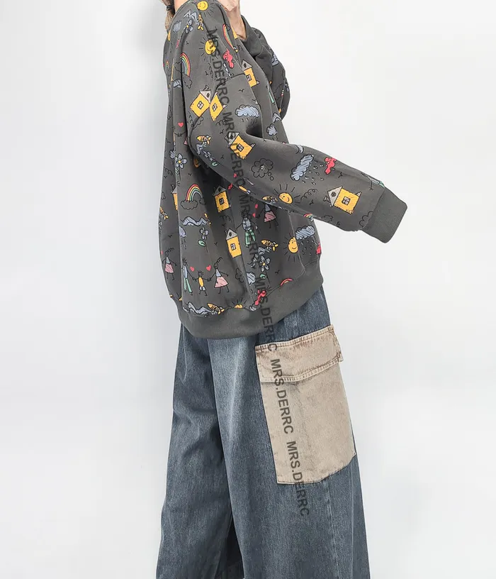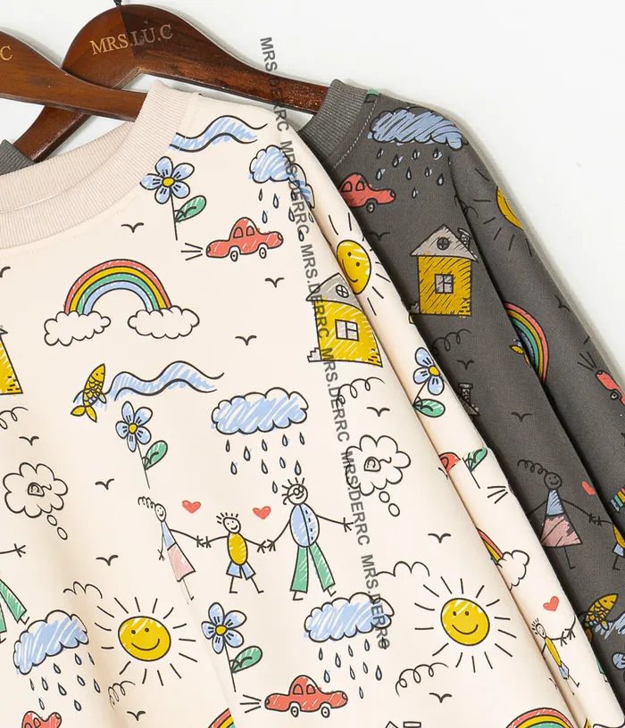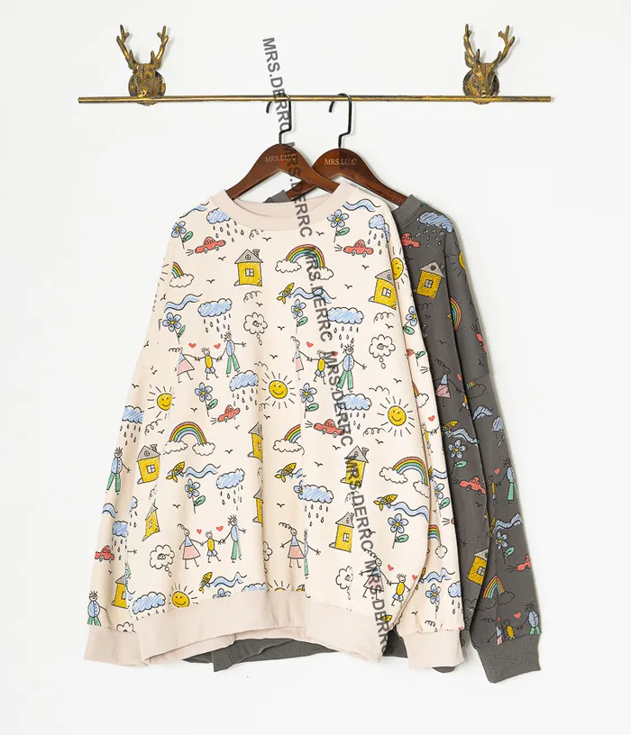 棉混紡童趣塗鴉上衣(深灰)