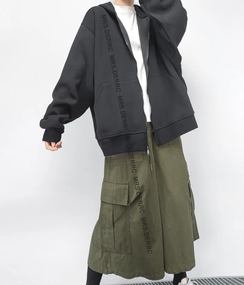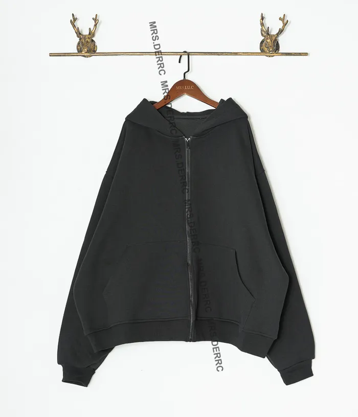 挺版太空棉連帽拉鍊口袋外套(黑色)