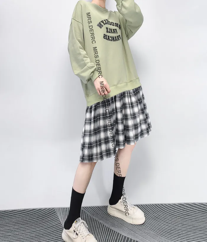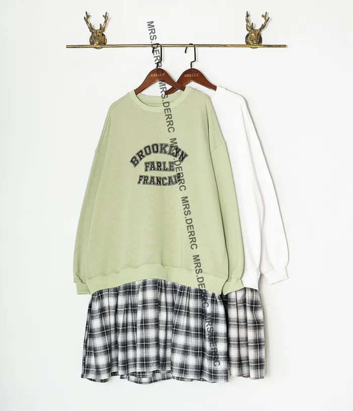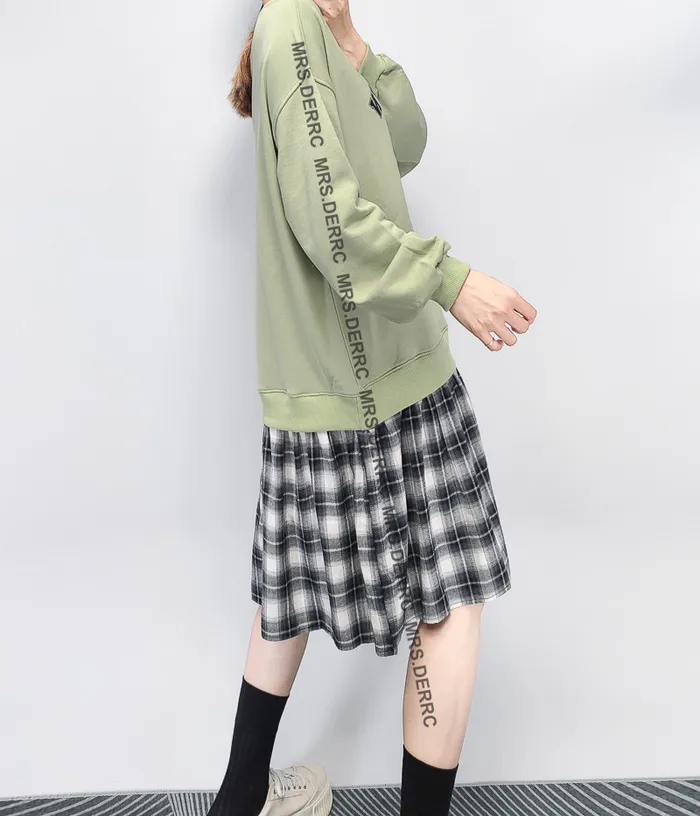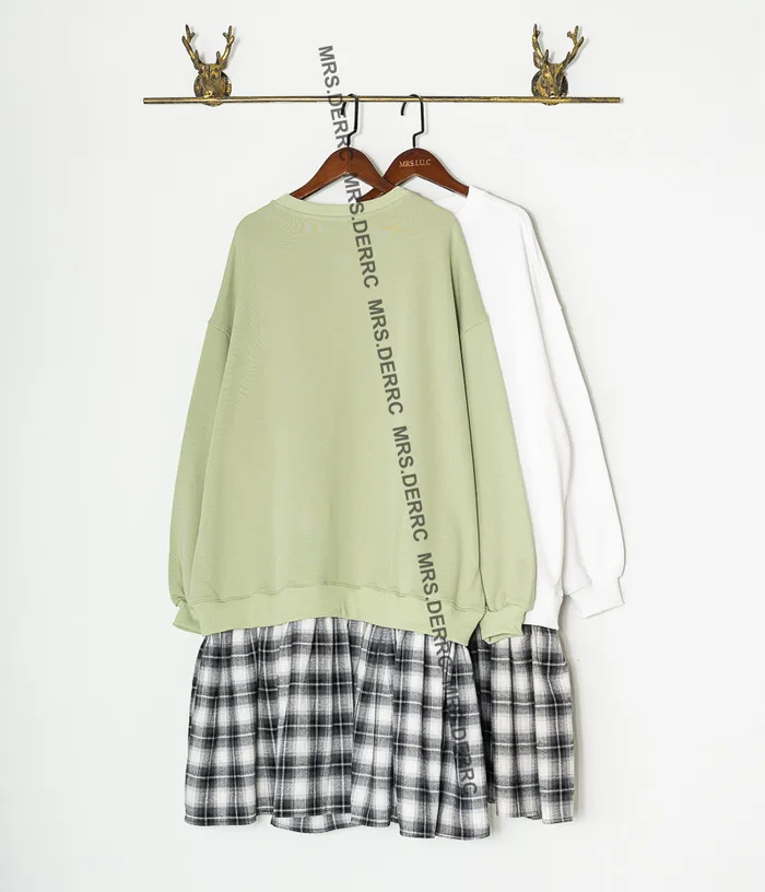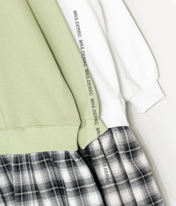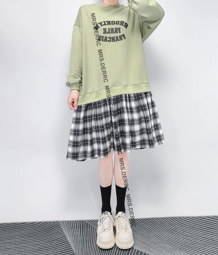 棉質格紋拼接字母洋裝(蘋果綠)