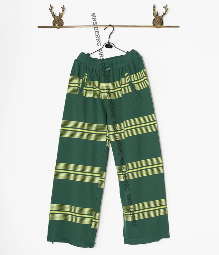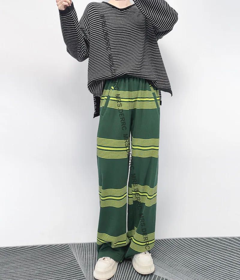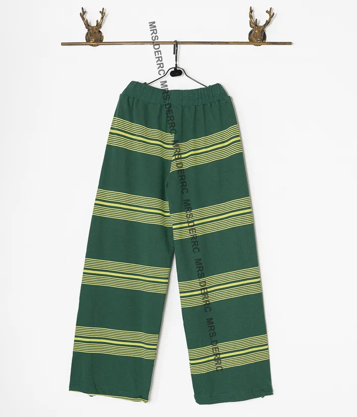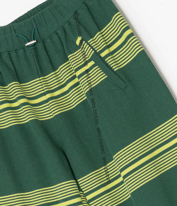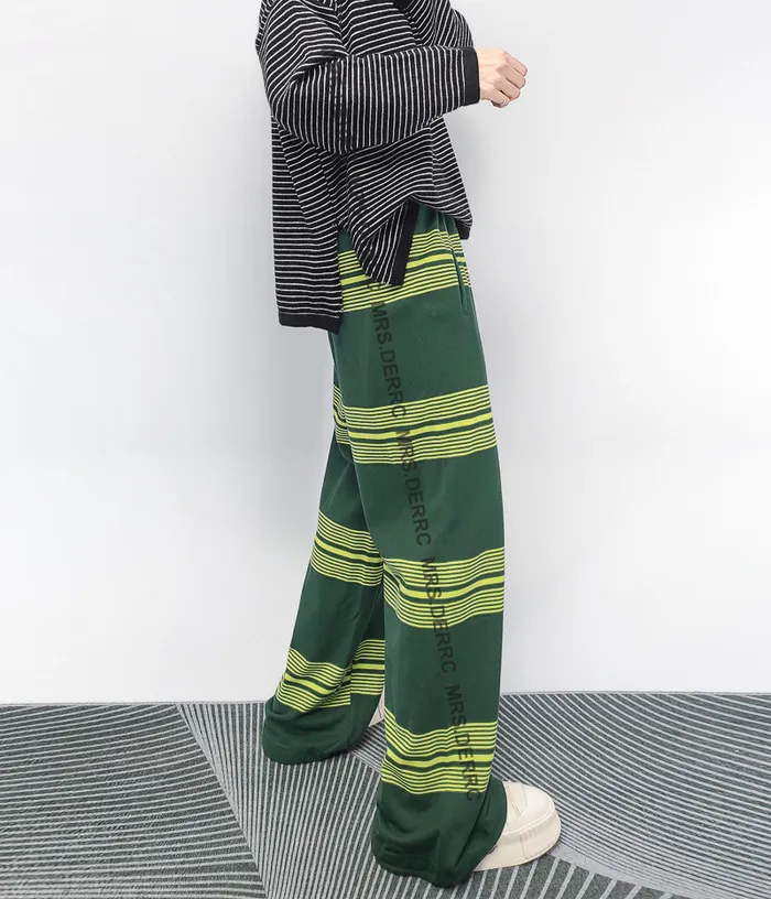 棉混紡撞色條紋鬆緊腰抽繩口袋褲(綠色)