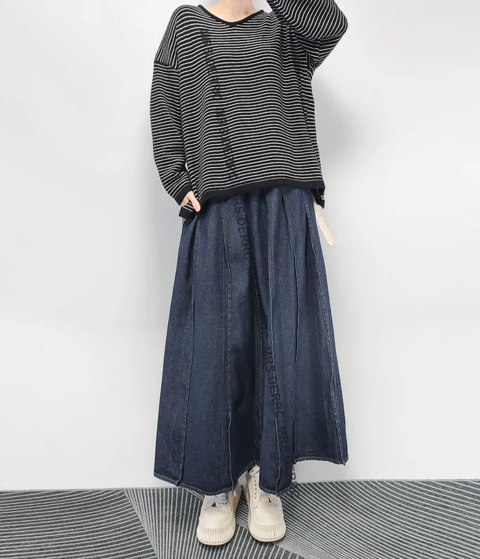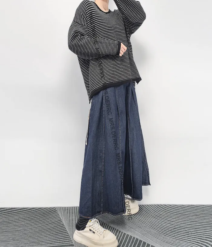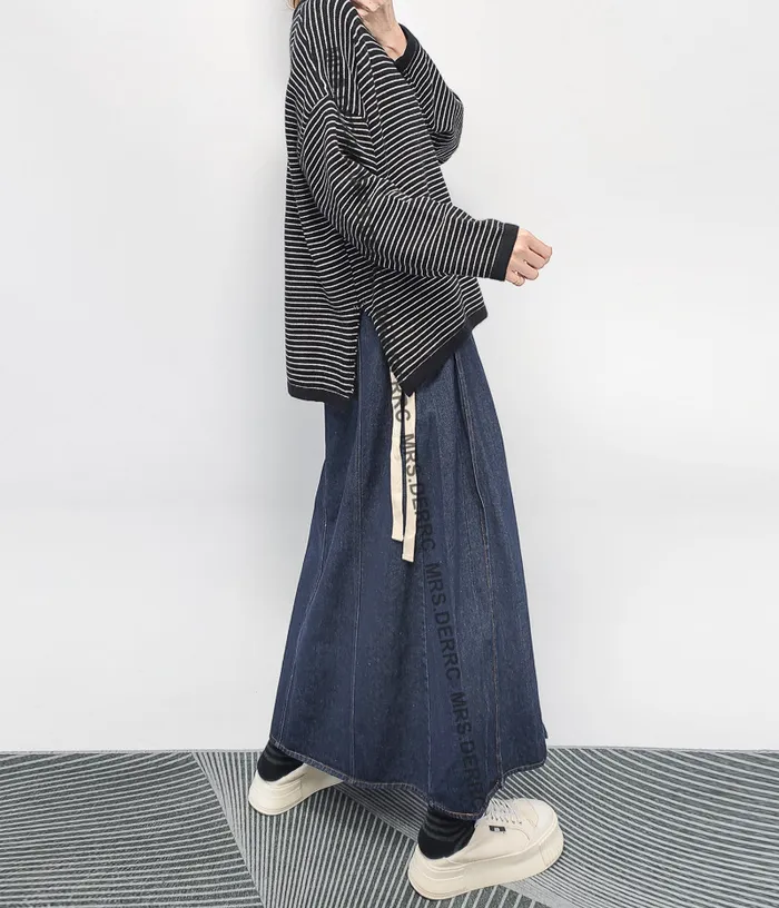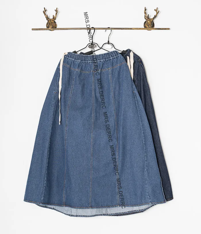 挺布牛仔百褶側抽繩口袋裙(深色)