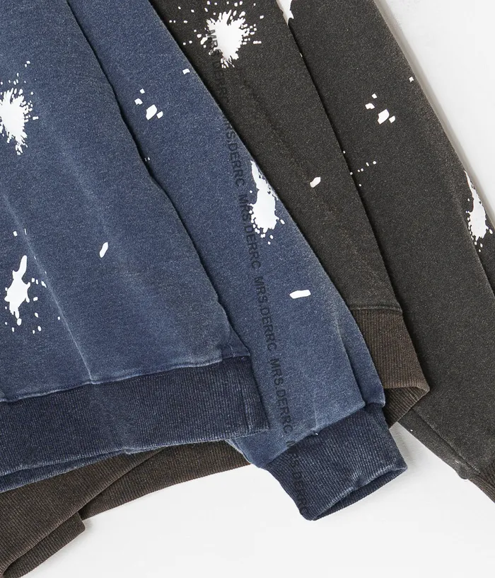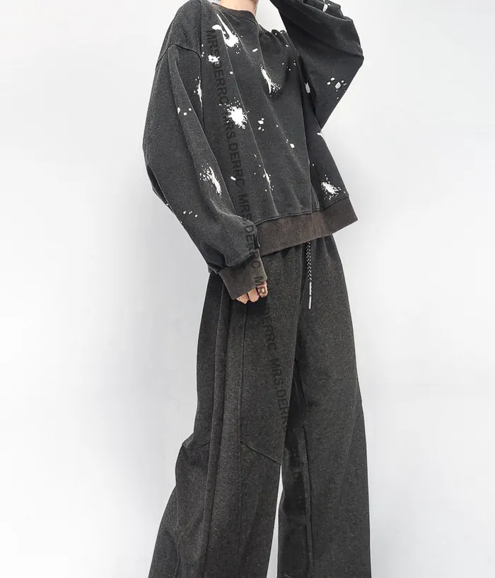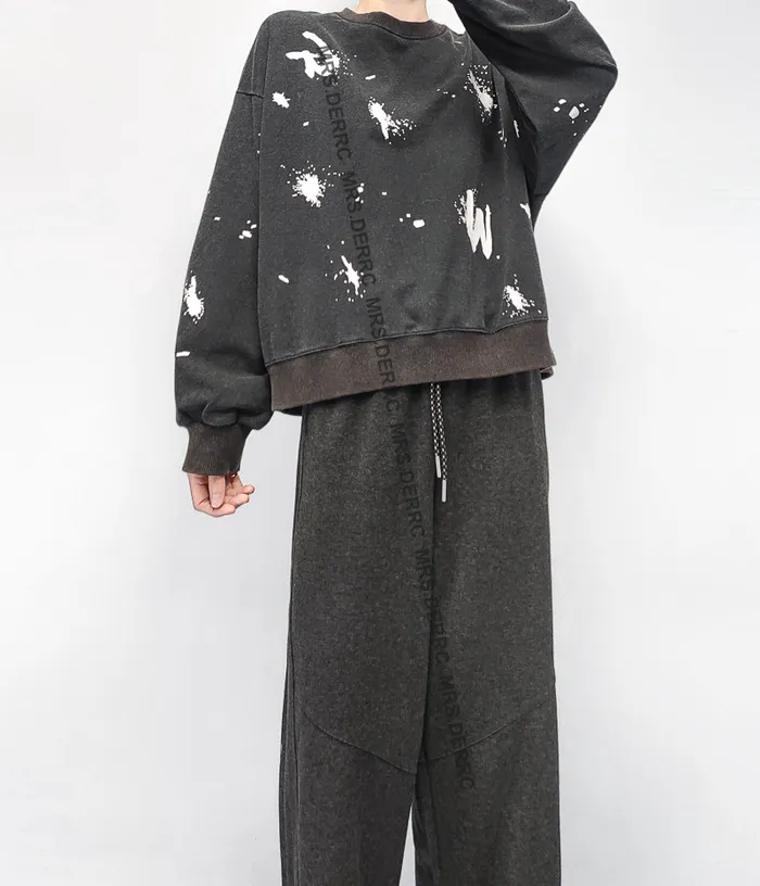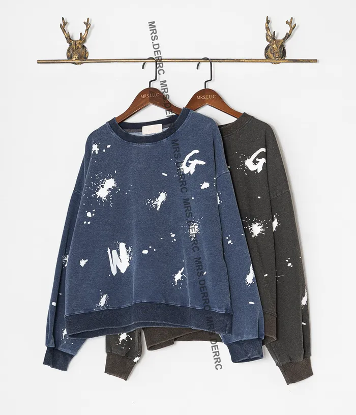 棉質水洗潑漆圓領上衣(黑色)