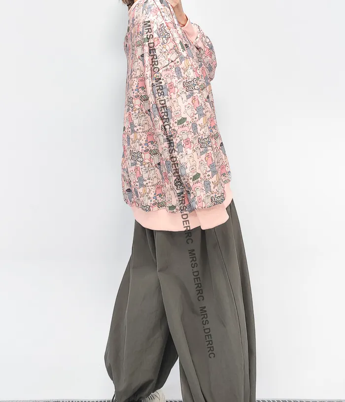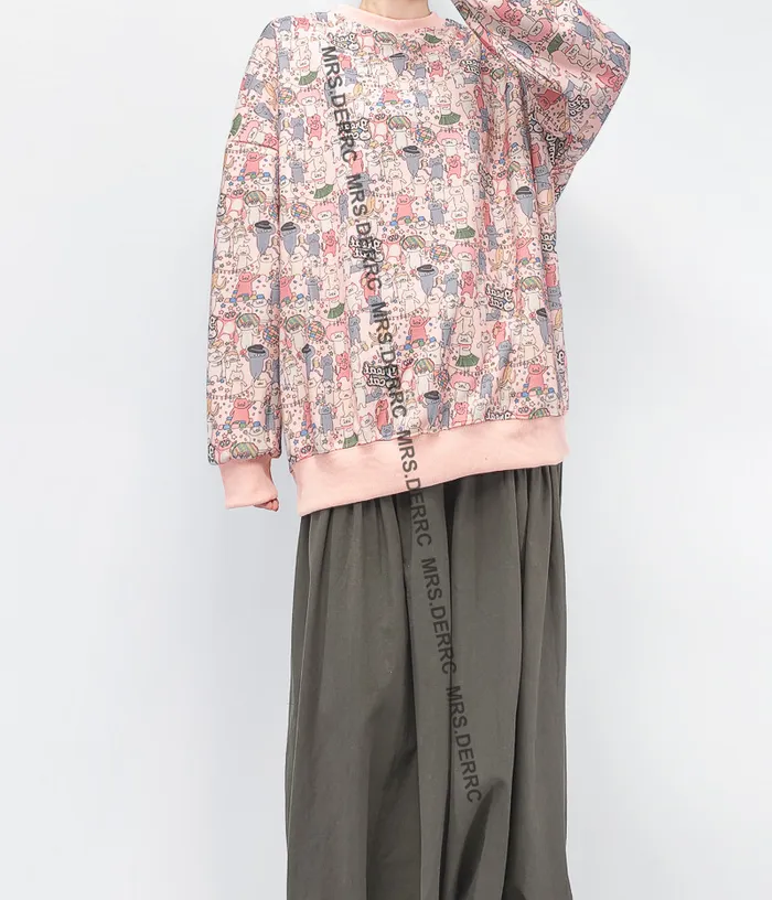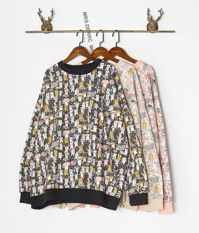 棉混紡貓貓歡樂嘉年華寬鬆上衣(淺粉)