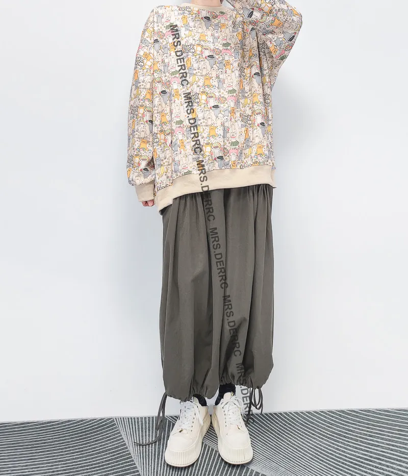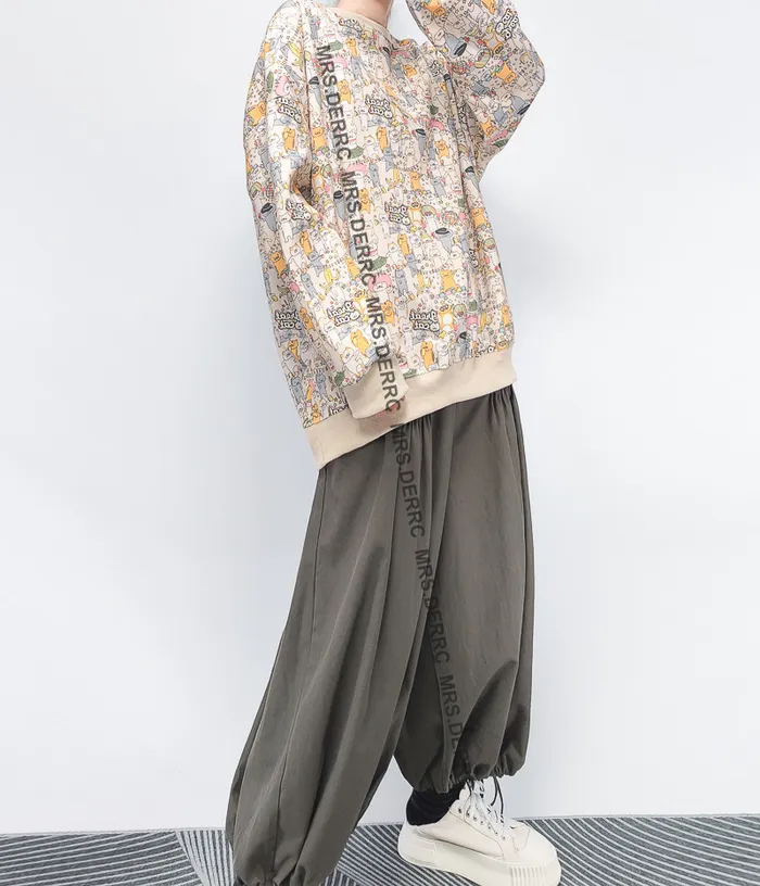 棉混紡貓貓歡樂嘉年華寬鬆上衣(杏色)