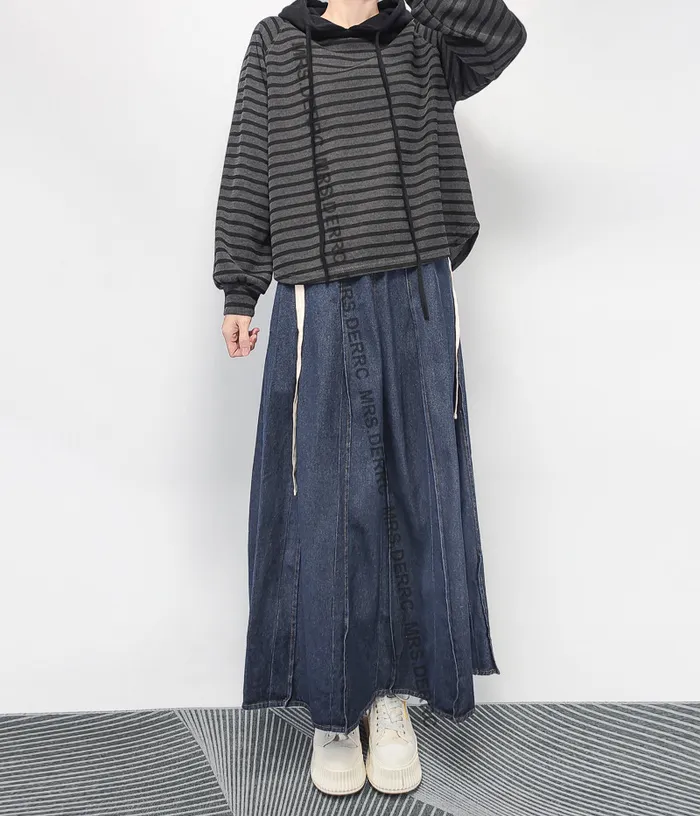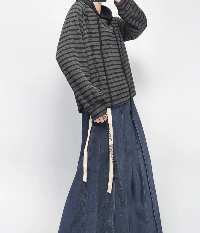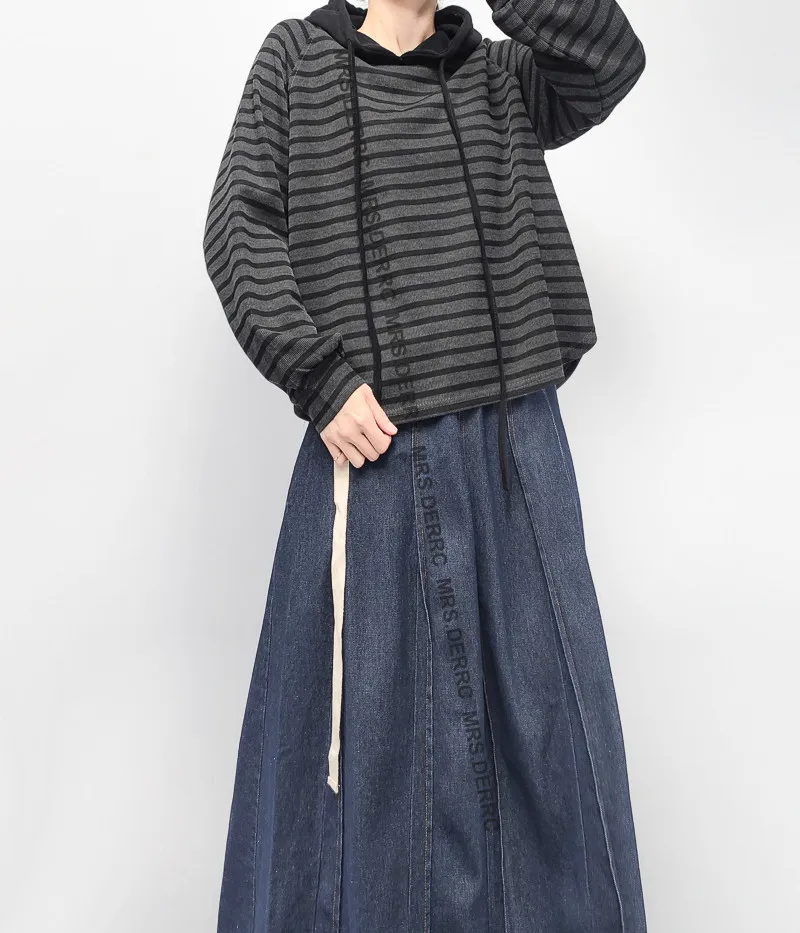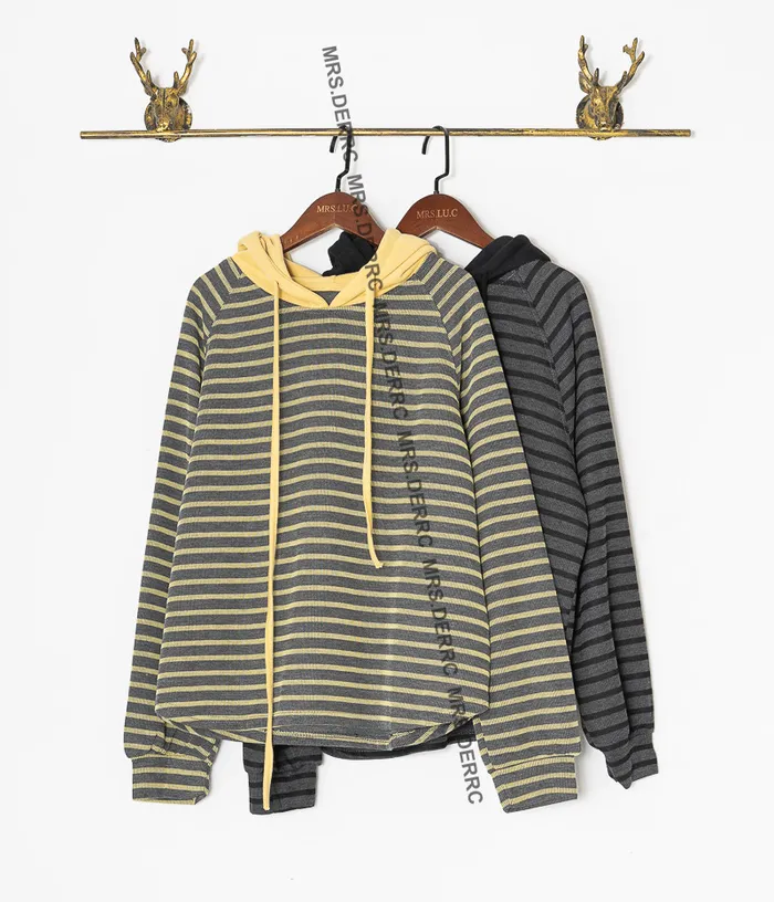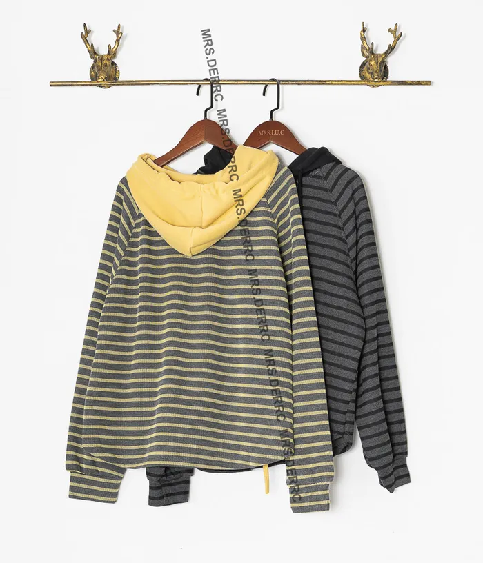 棉混紡連帽抽繩條紋上衣(黑帽)