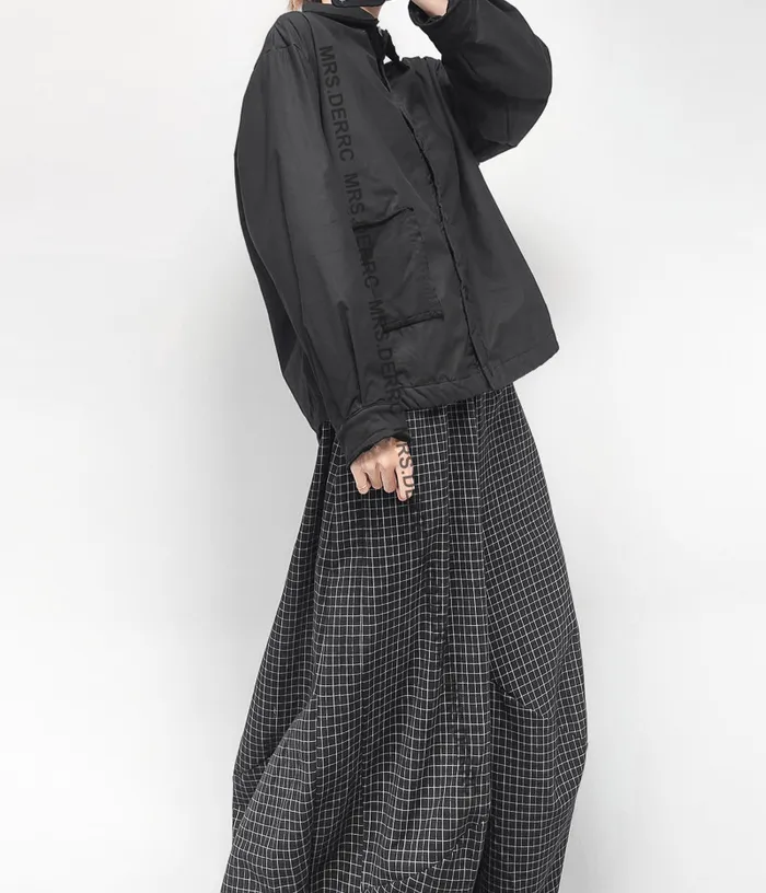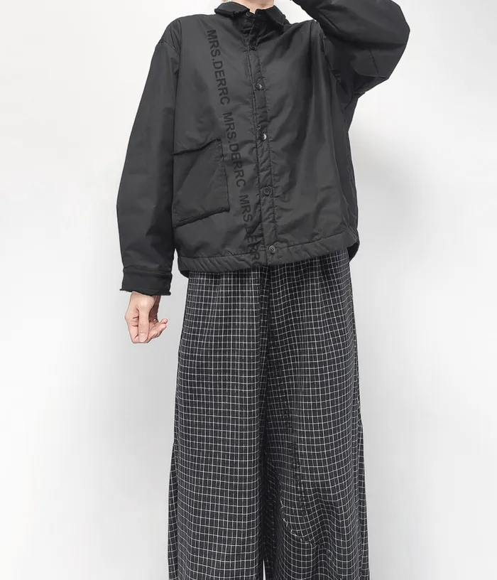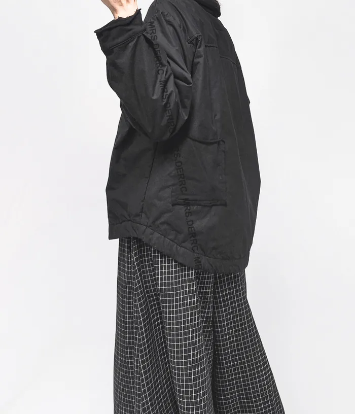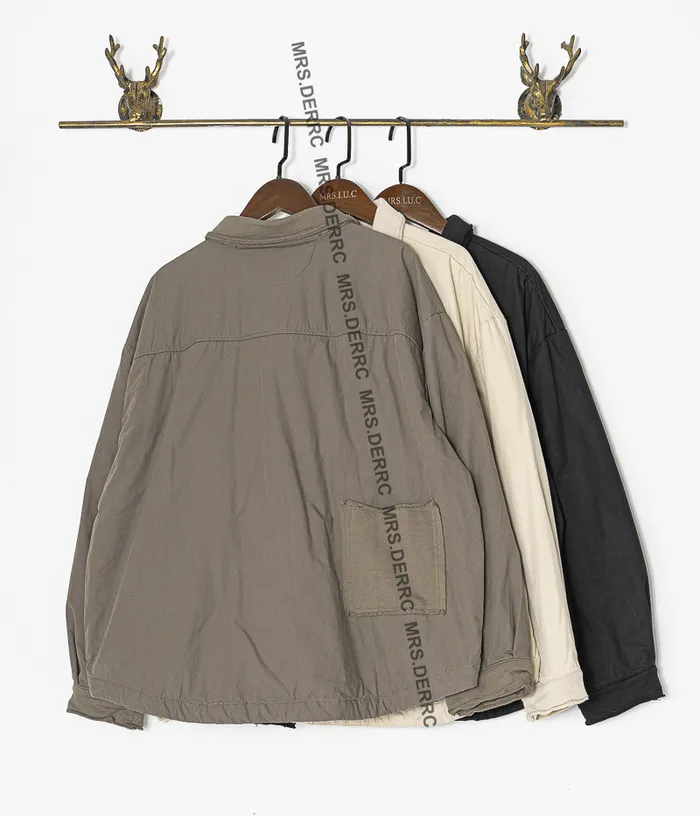 棉混紡薄鋪棉開釦口袋外套(黑色)