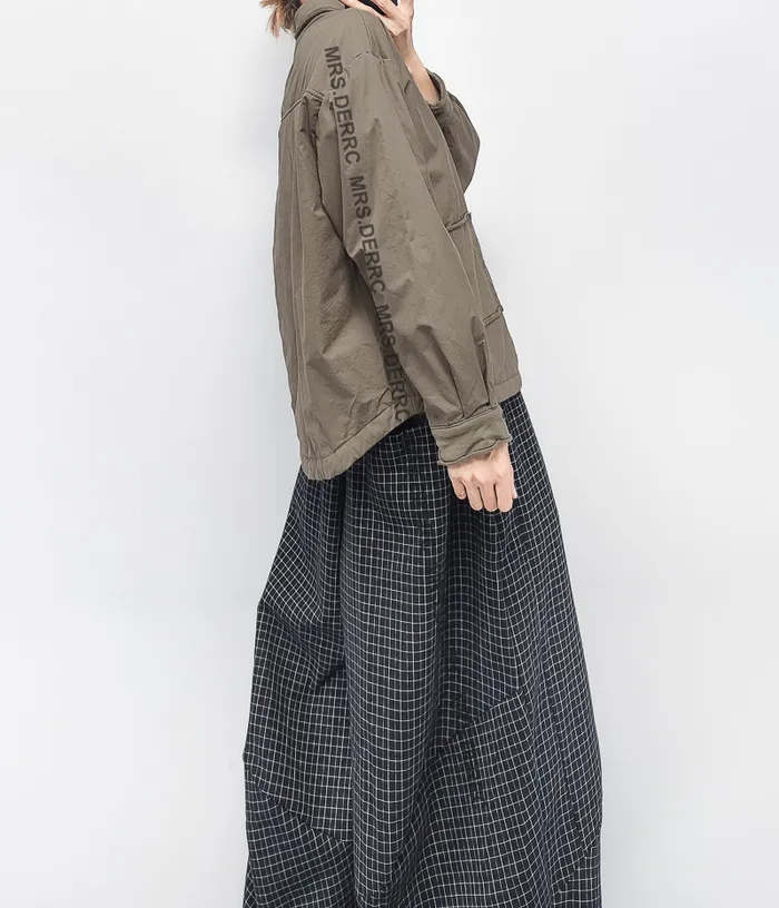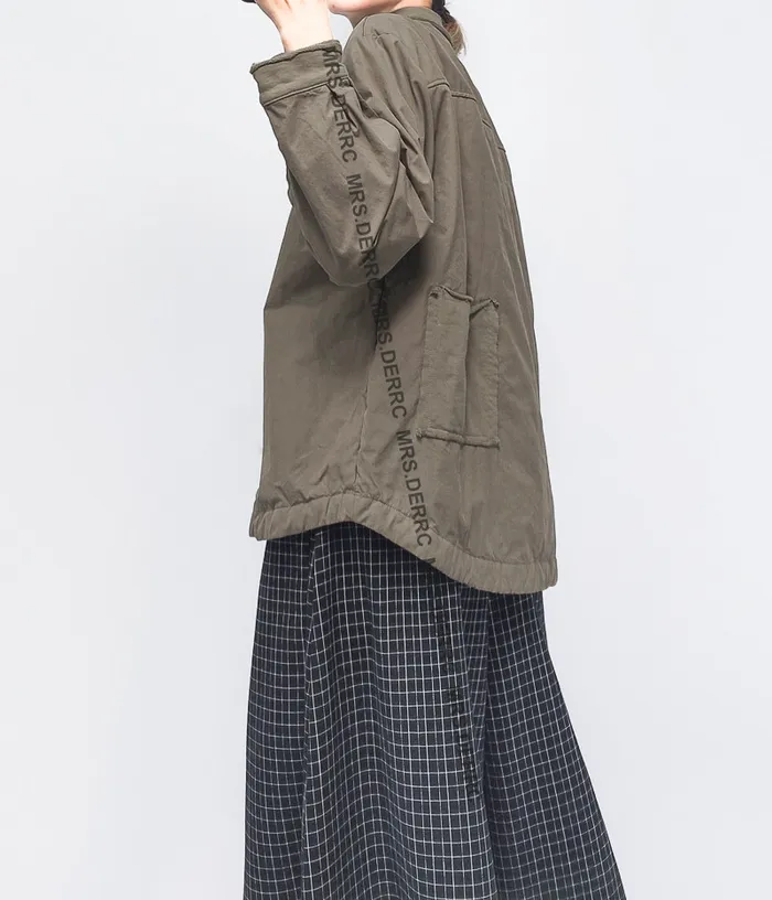棉混紡薄鋪棉開釦口袋外套(灰綠)