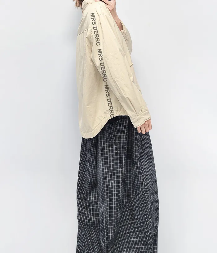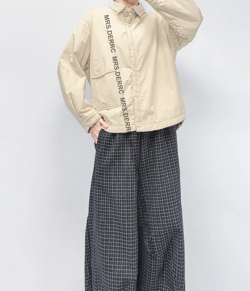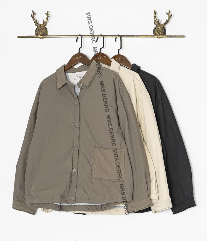 棉混紡薄鋪棉開釦口袋外套(杏色)
