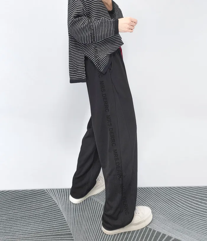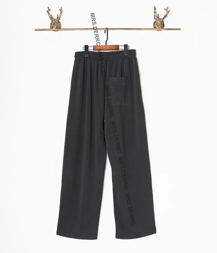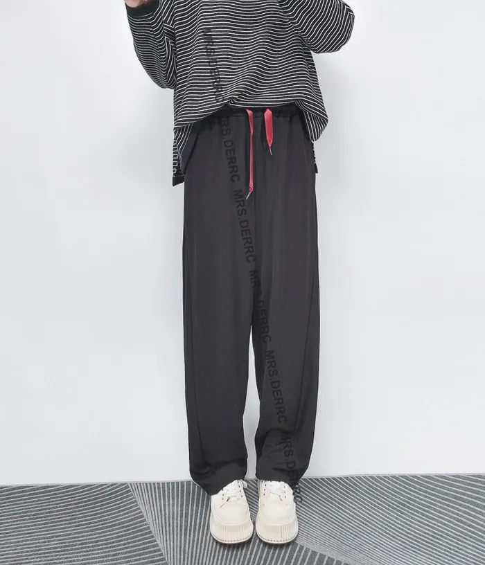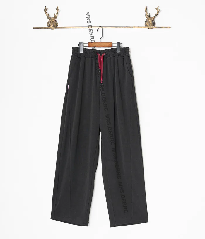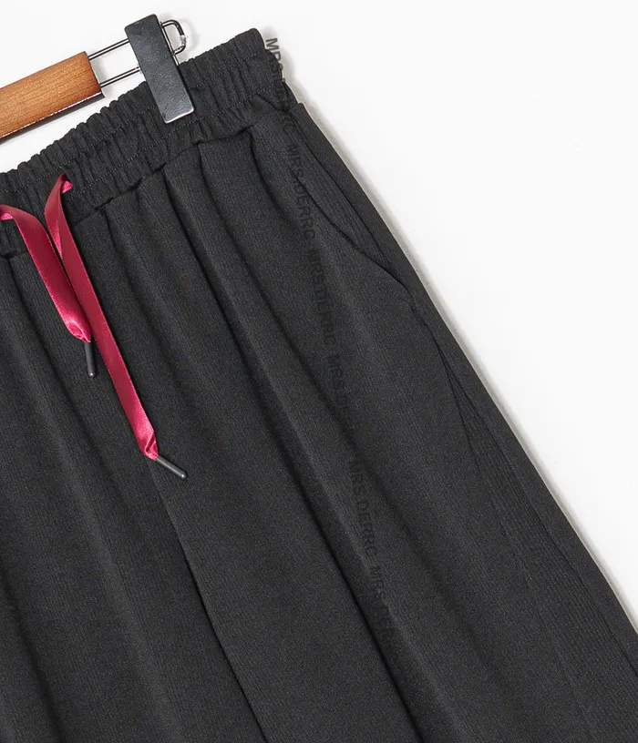 棉混紡緞帶超彈坑條垂墜口袋褲(黑色)