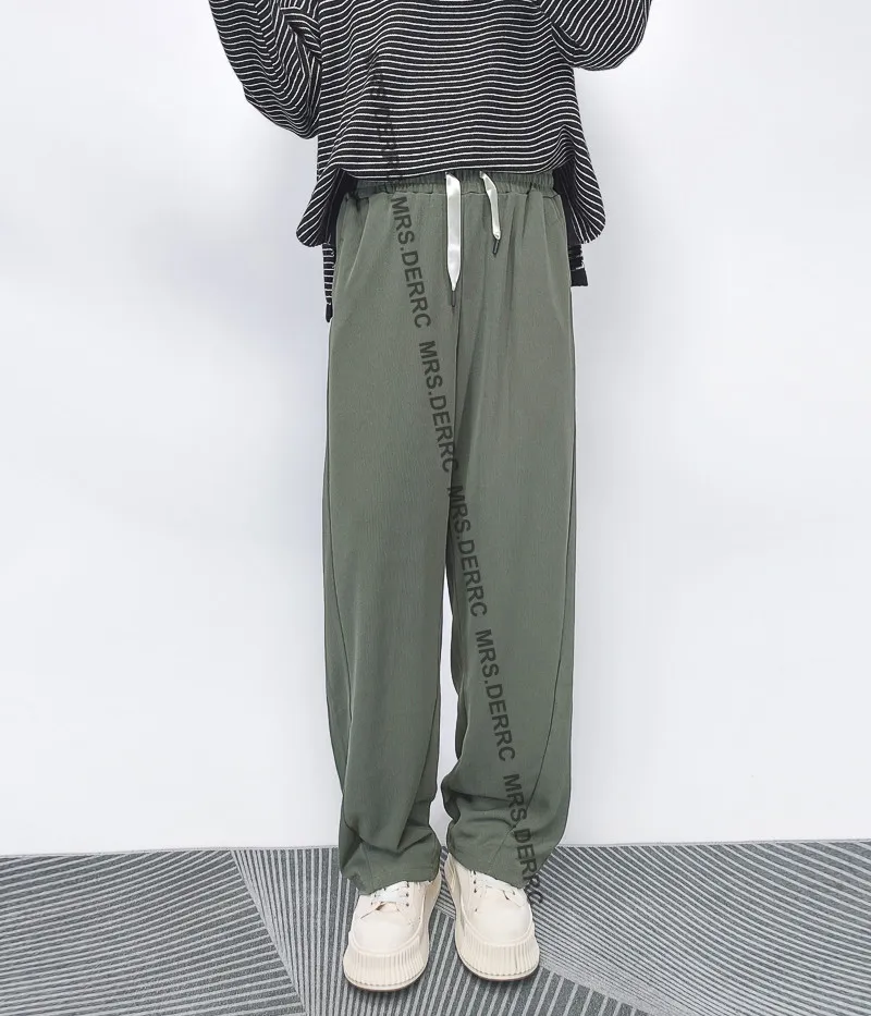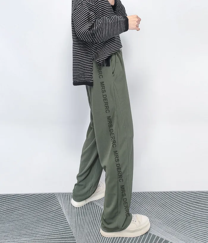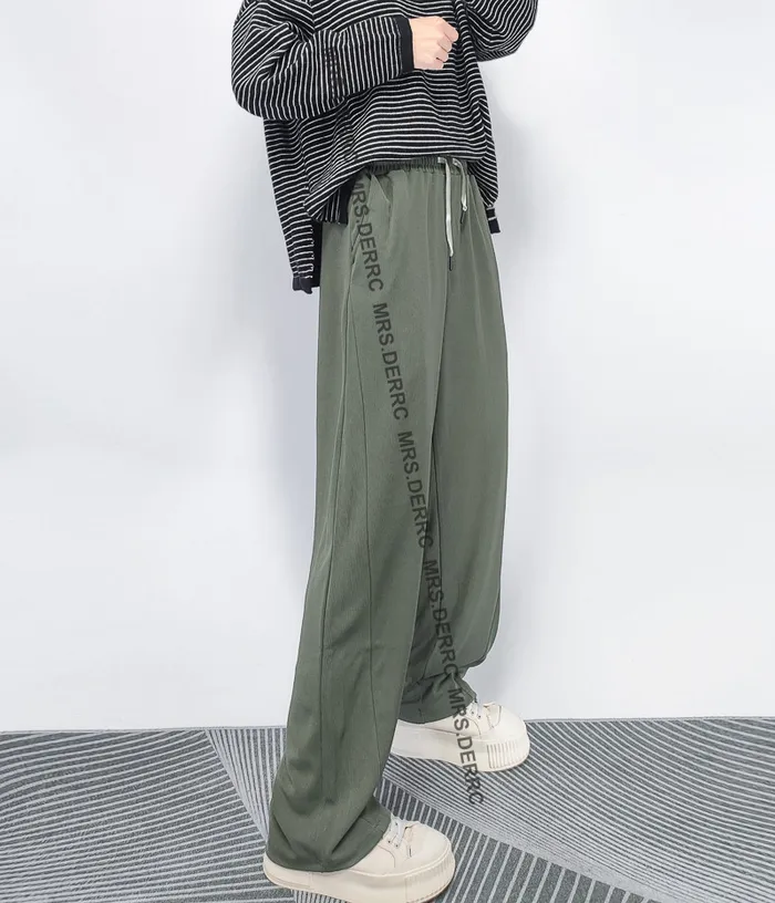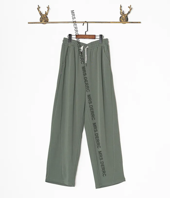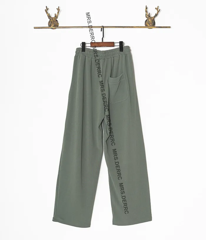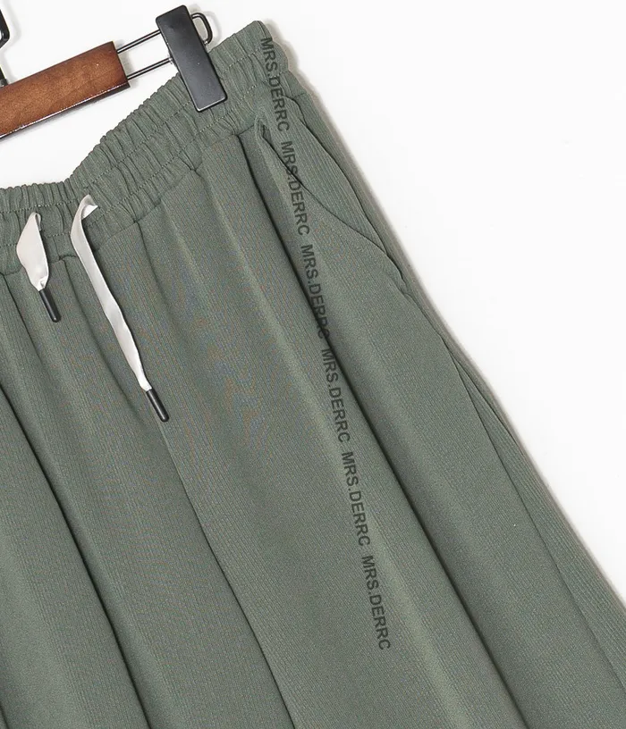 棉混紡緞帶超彈坑條垂墜口袋褲(綠色)