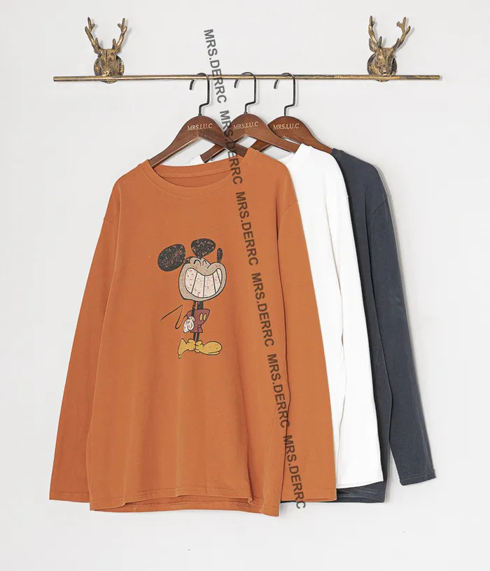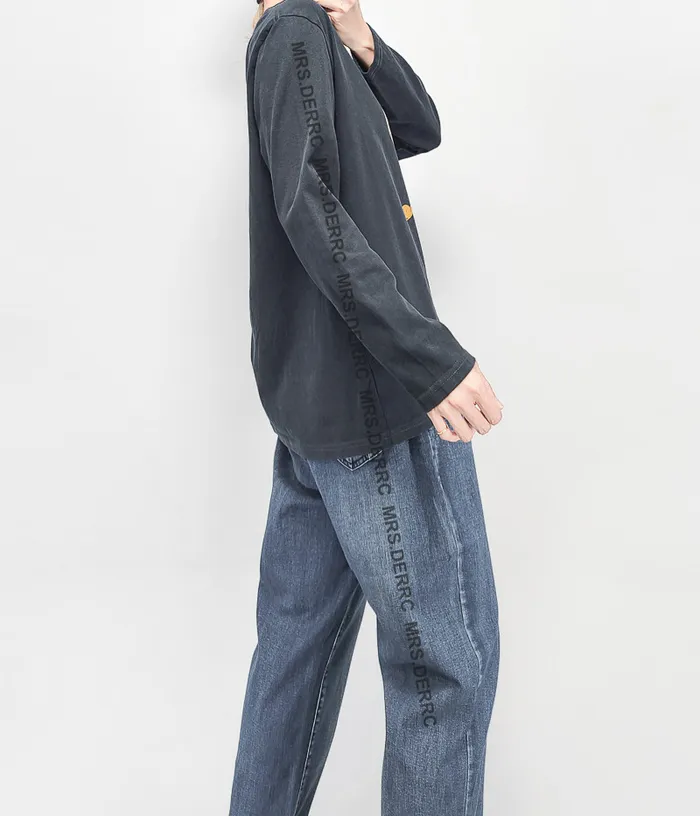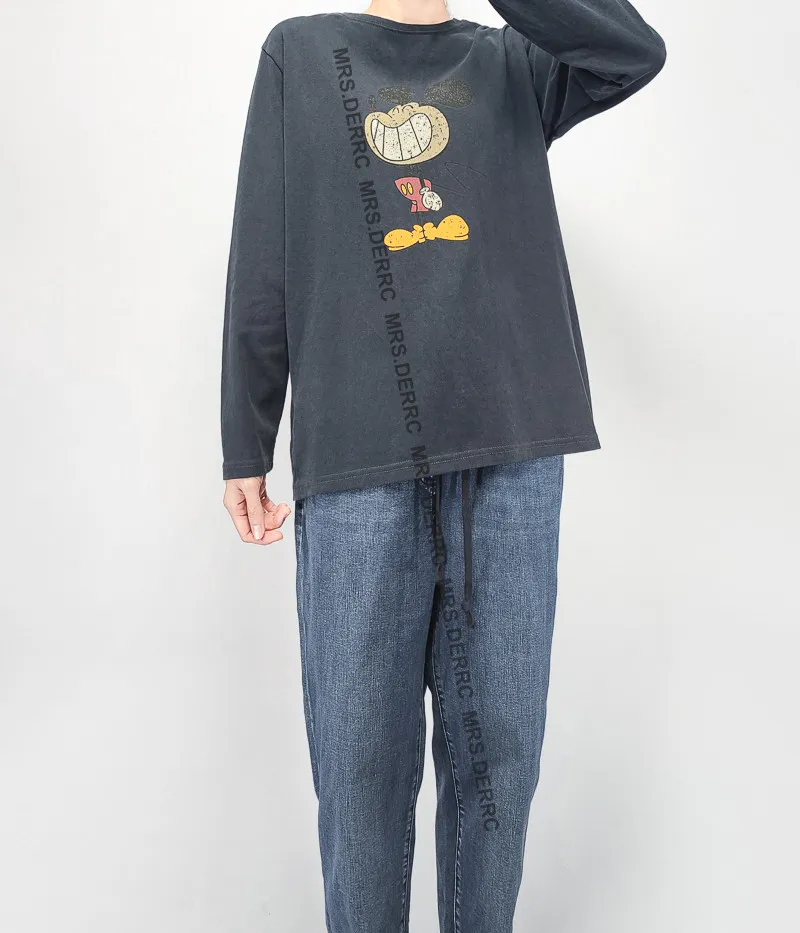 棉混紡斑駁大牙印花上衣(灰藍色)