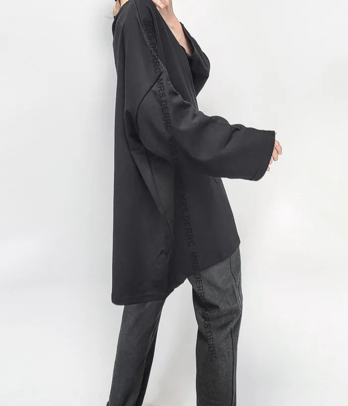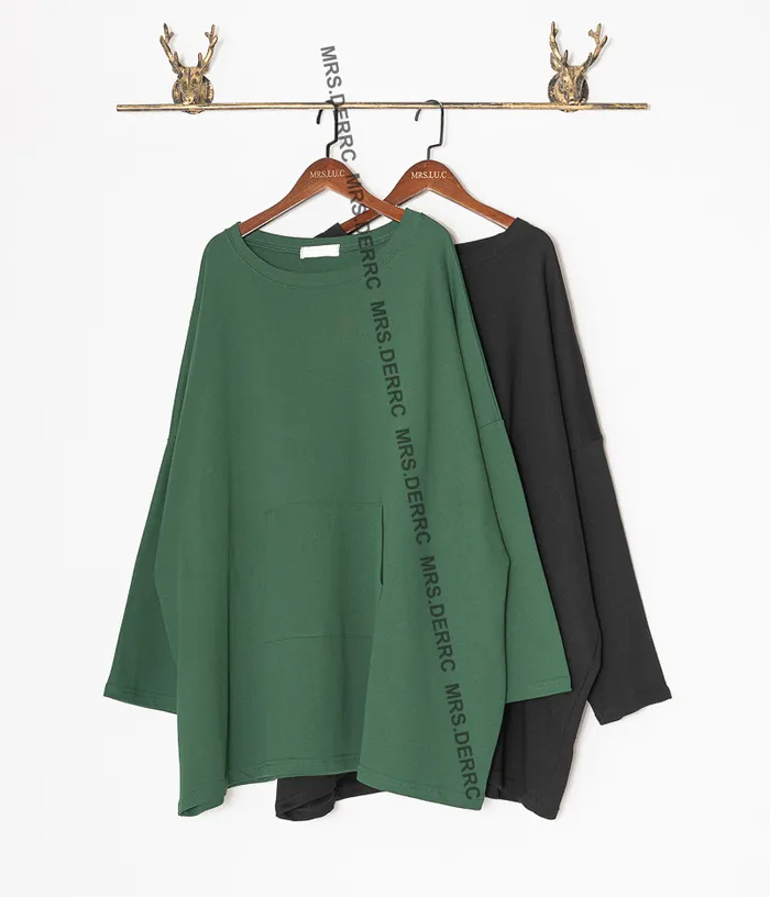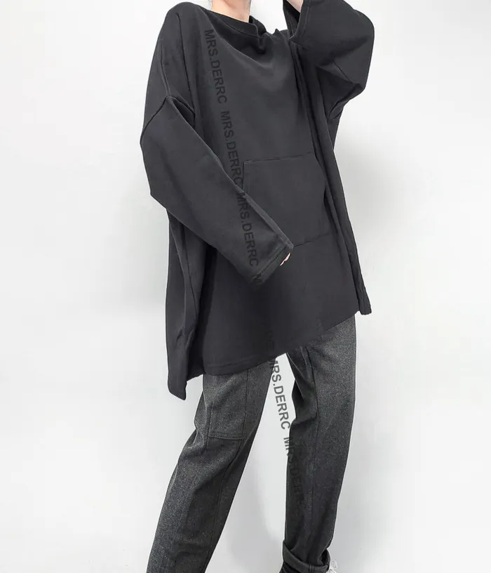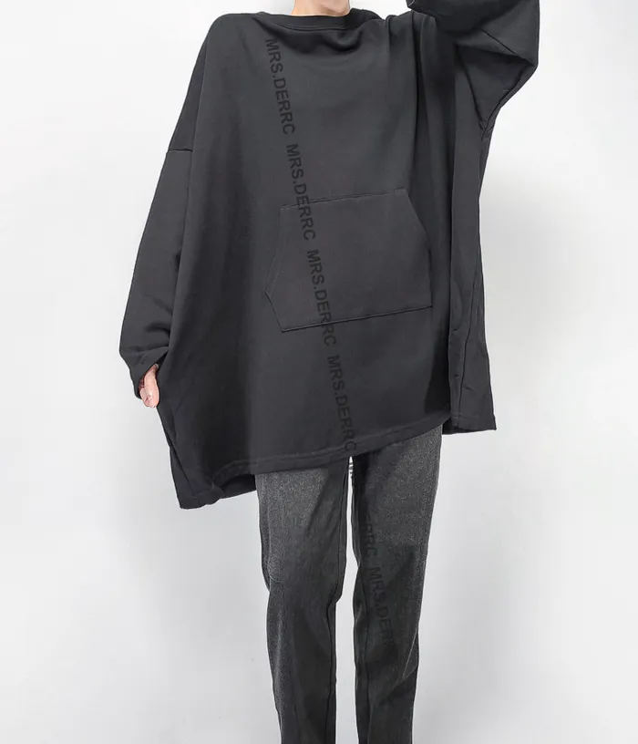 棉質肚子口袋寬鬆長版上衣(黑色)