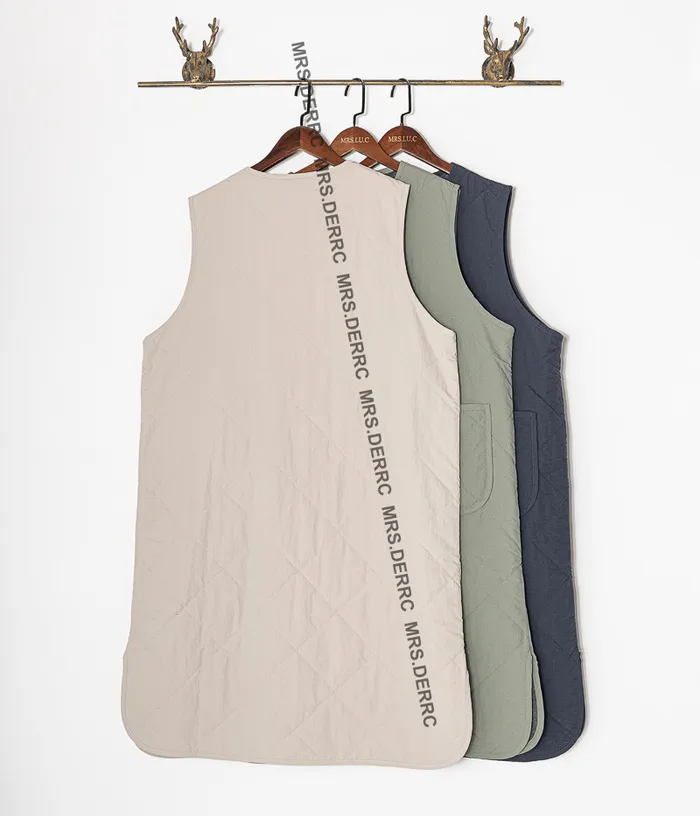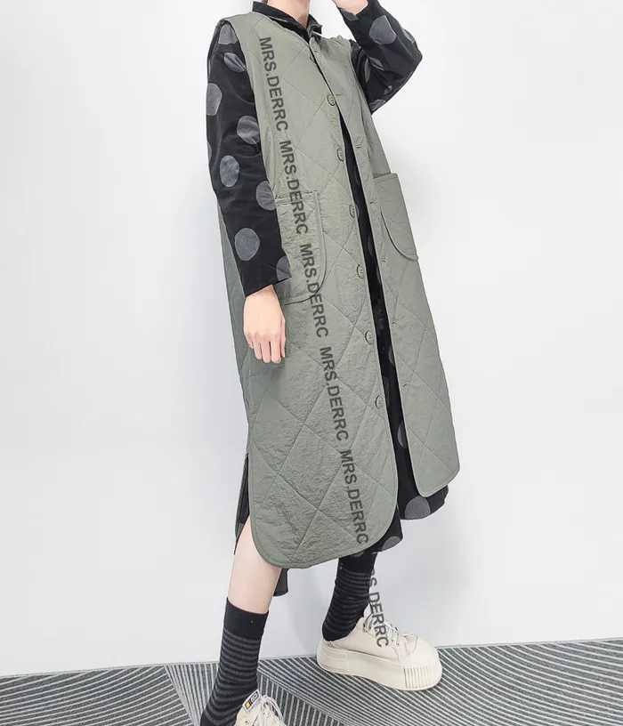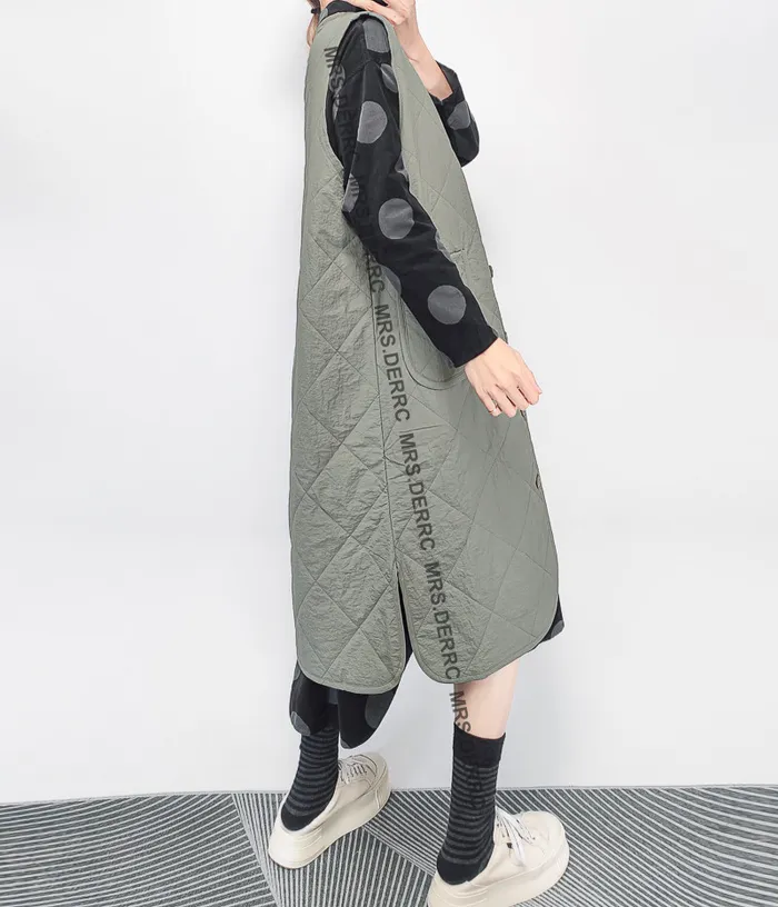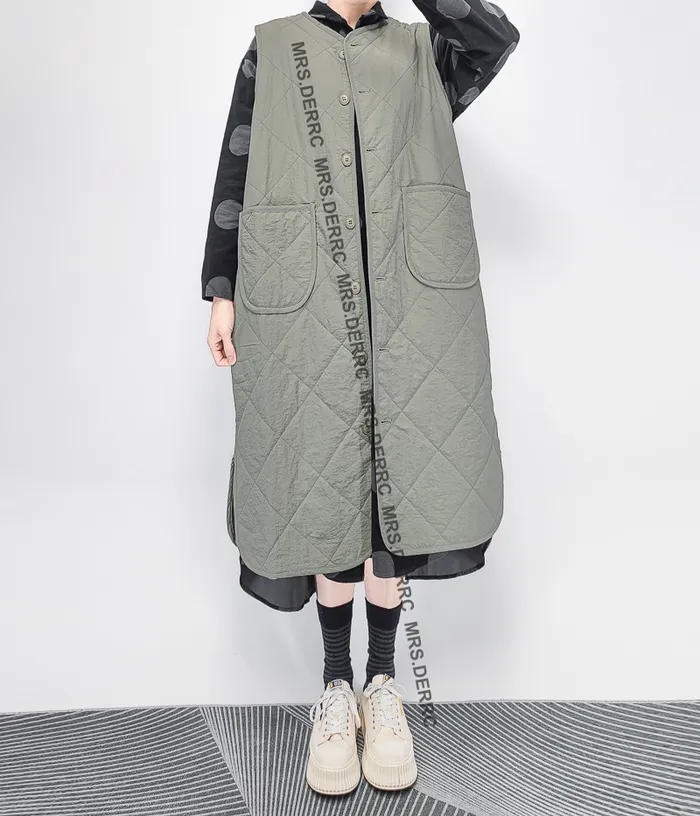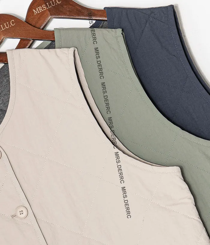 棉質衍縫薄鋪棉開釦口袋長背心(淺綠)