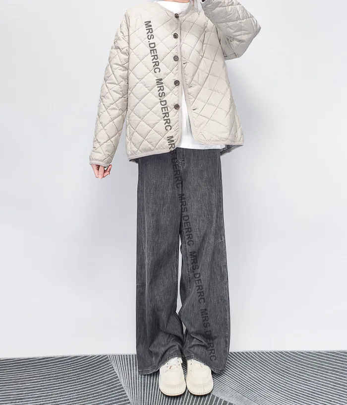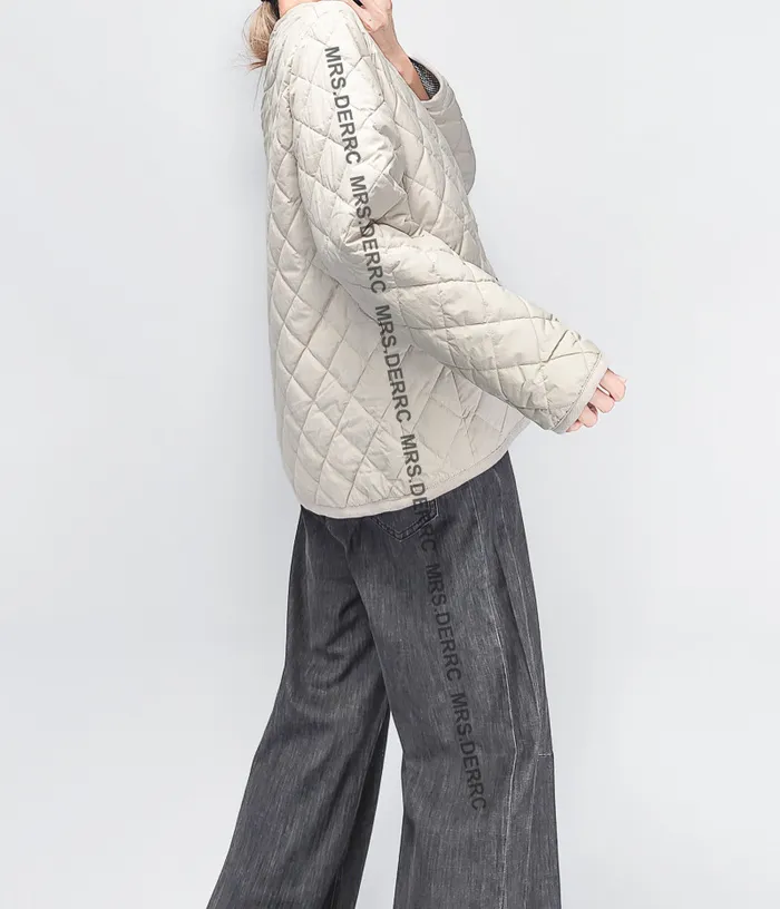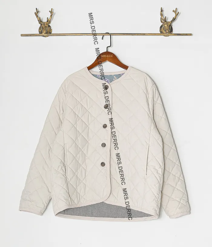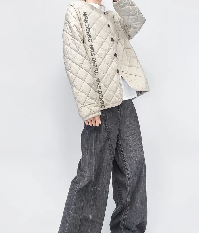 衍縫薄鋪棉開釦口袋外套(杏色)