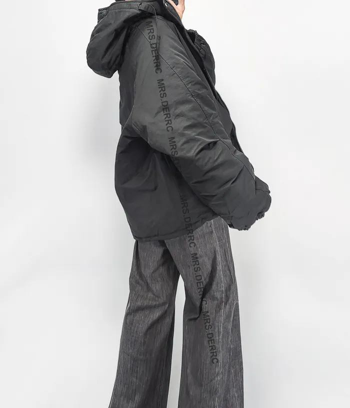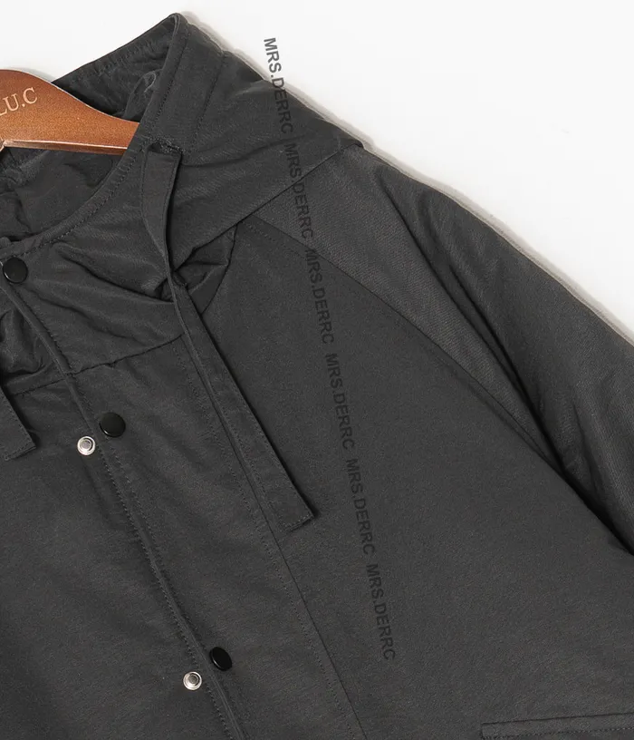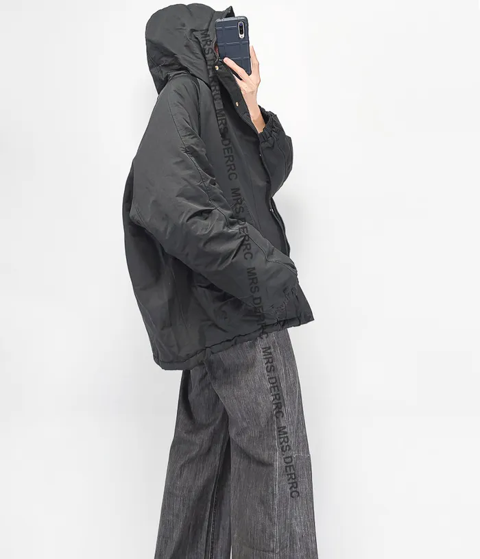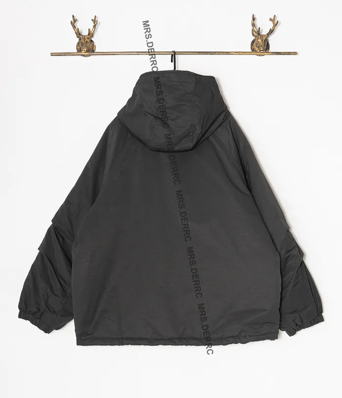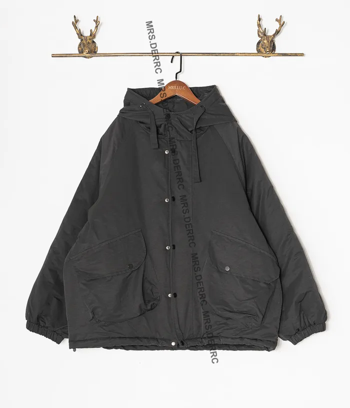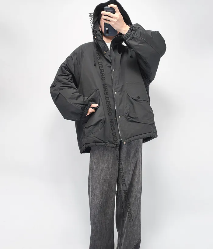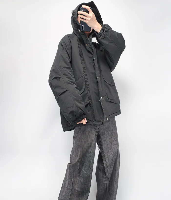 棉質挺布連帽鋪棉口袋寬鬆外套(黑色)