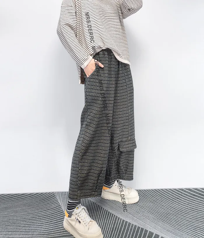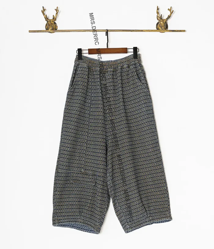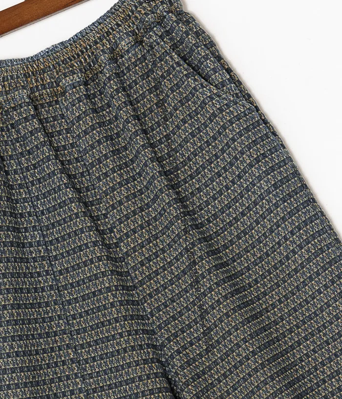 棉混紡復古水洗編織低檔口袋褲(藍色)