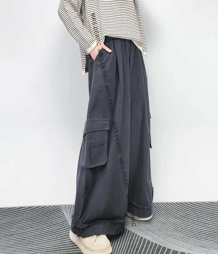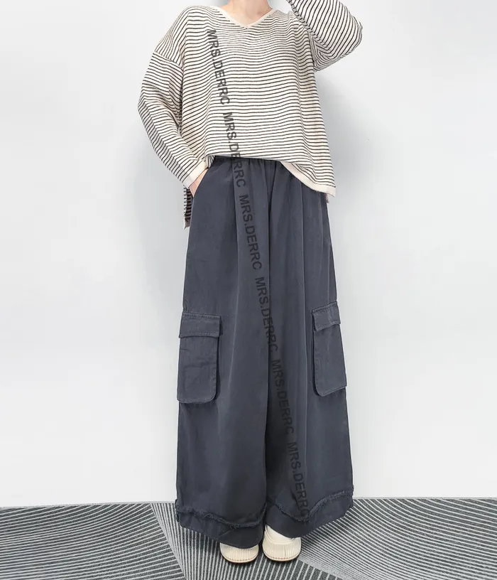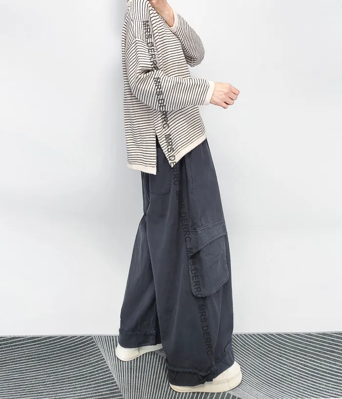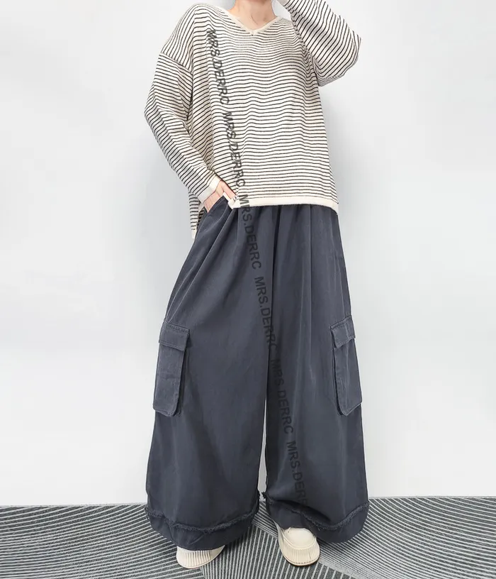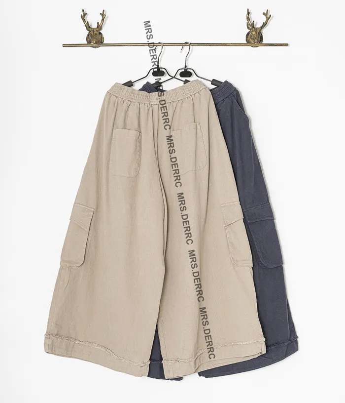 棉質褲腳反褶造型多口袋工裝褲(藍色)