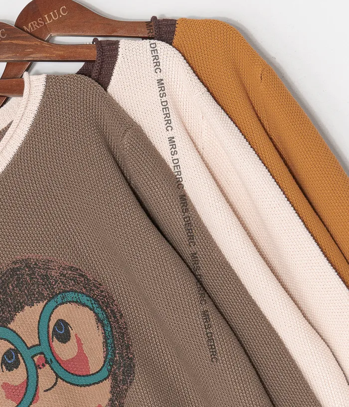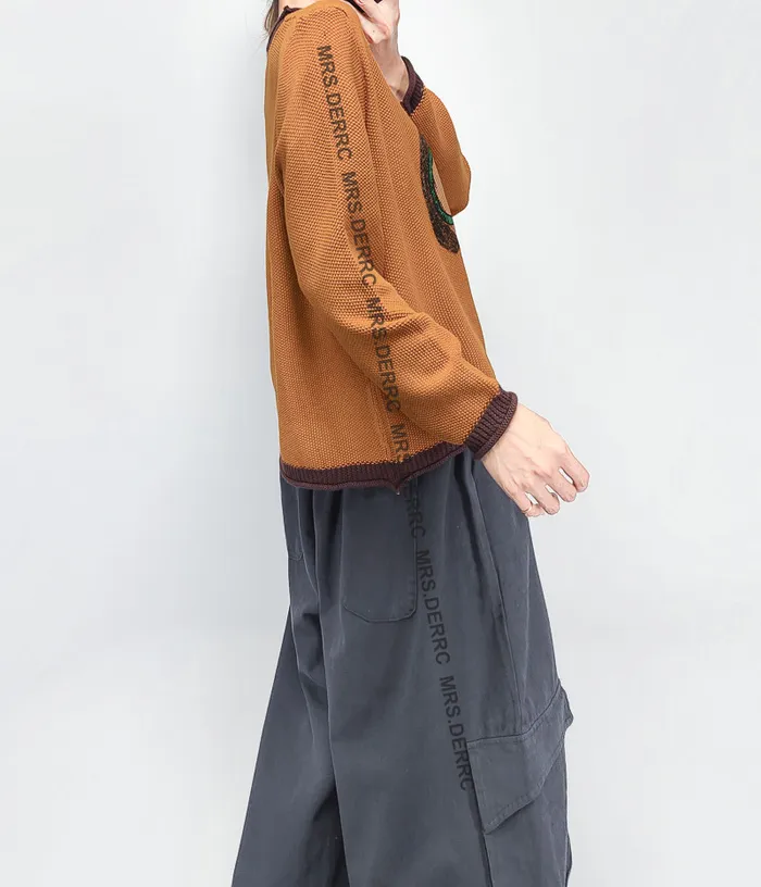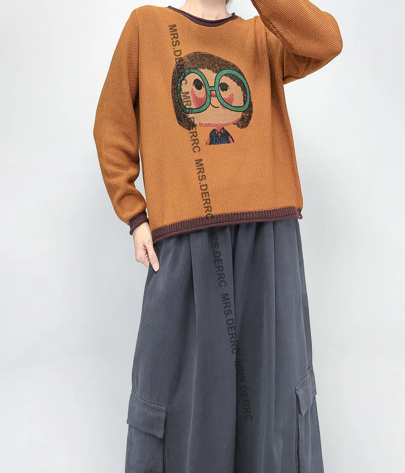 撞色滾邊針織眼鏡女孩上衣(咖橘)