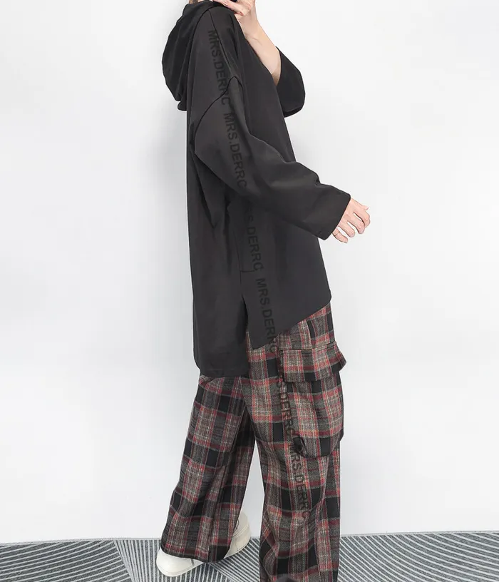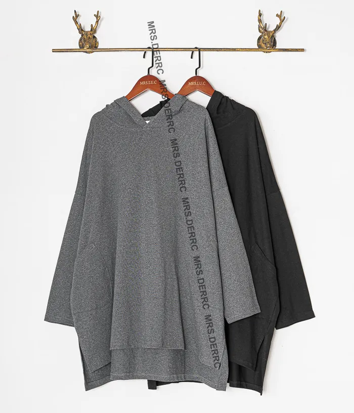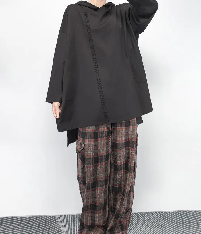 棉質連帽雙口袋寬鬆上衣(黑色)