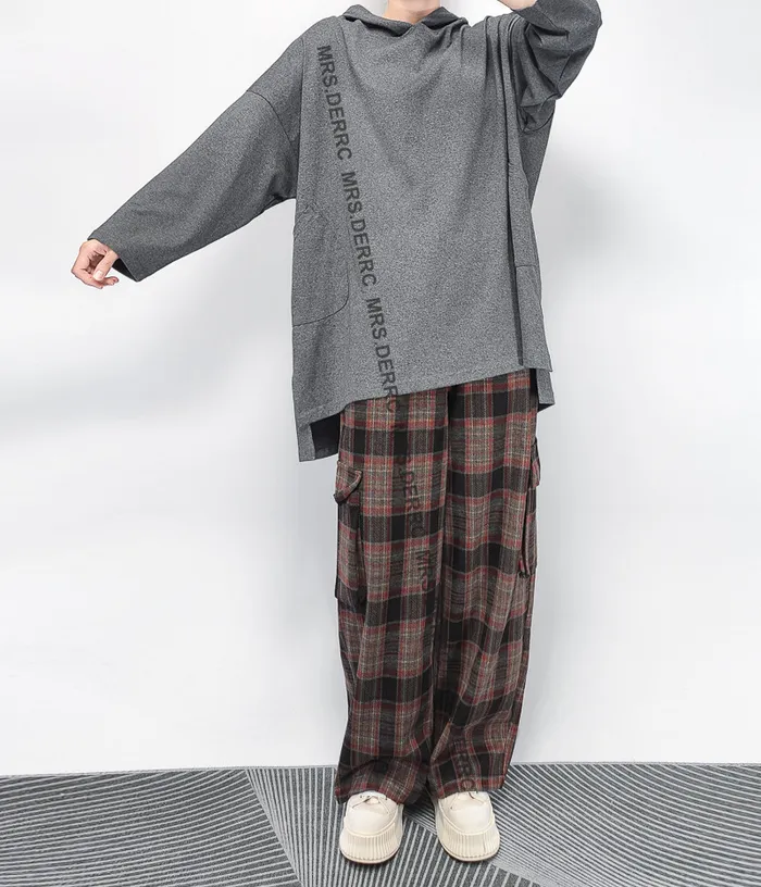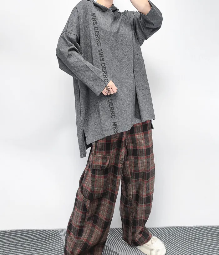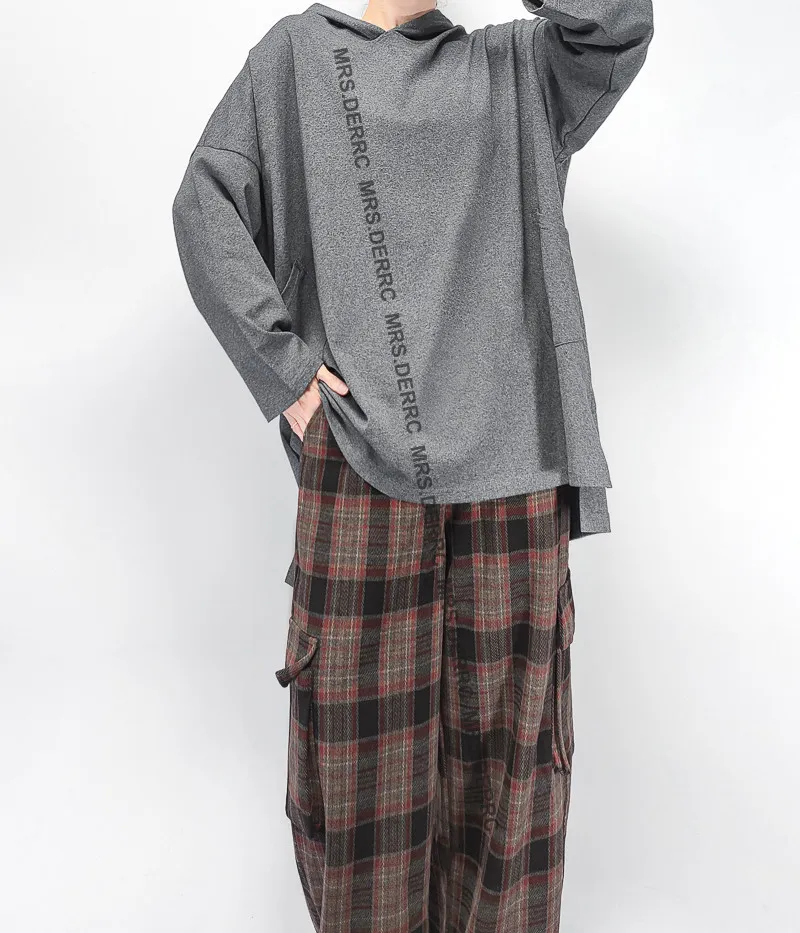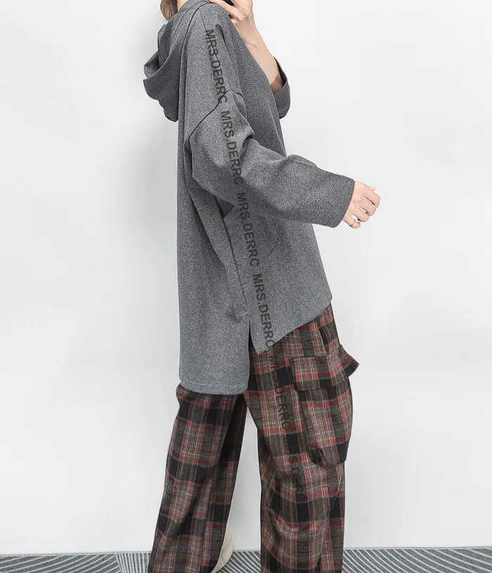 棉質連帽雙口袋寬鬆上衣(灰色)