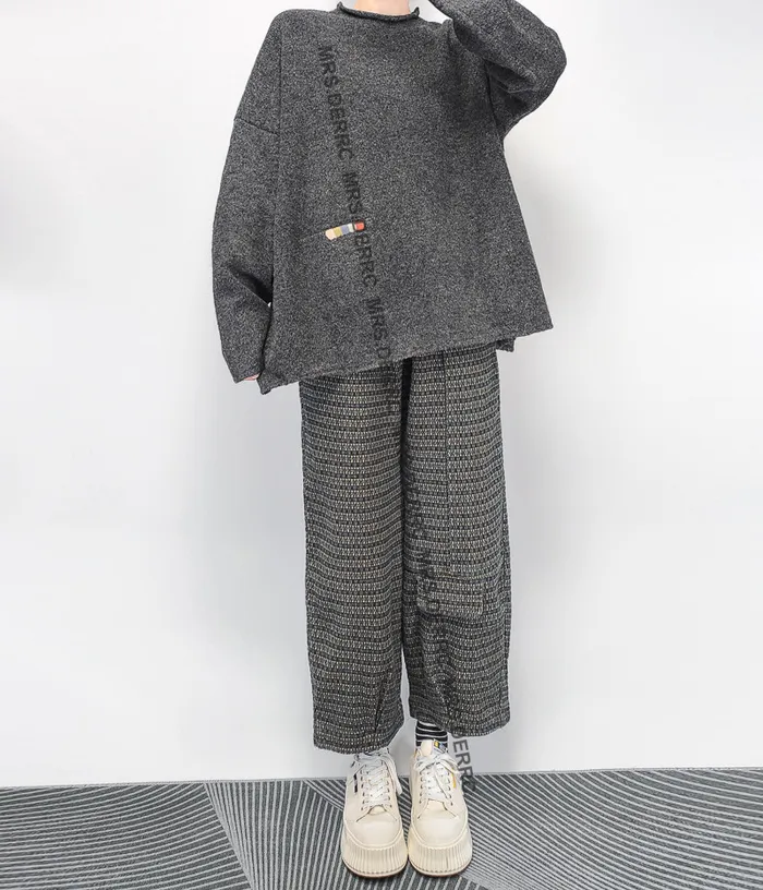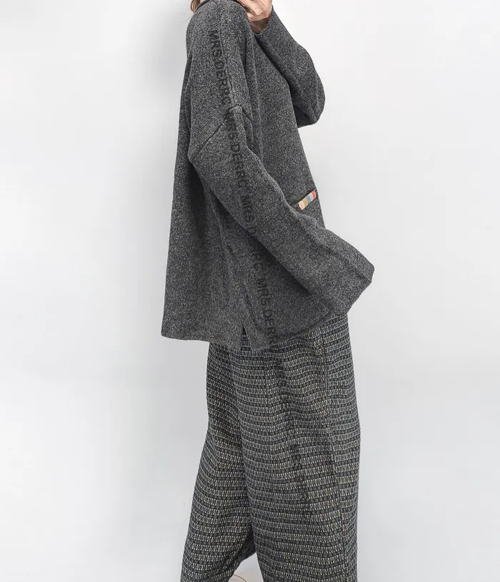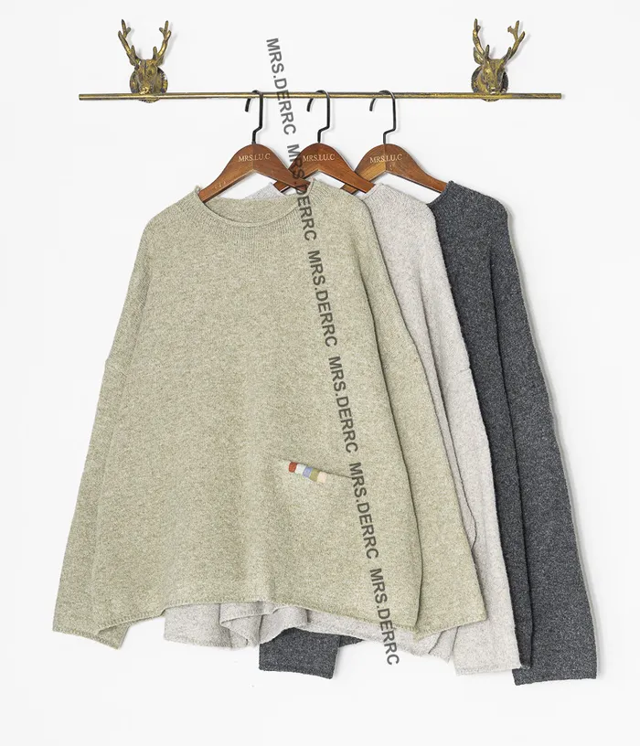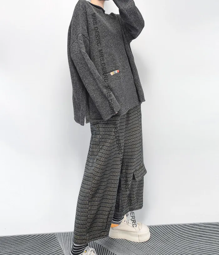 針織小立領彩色方塊口袋寬鬆上衣(深灰)
