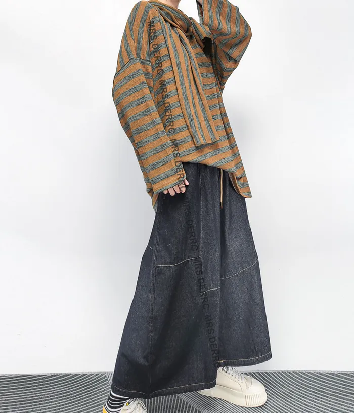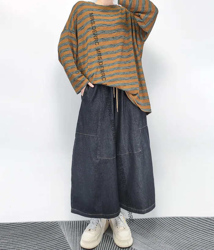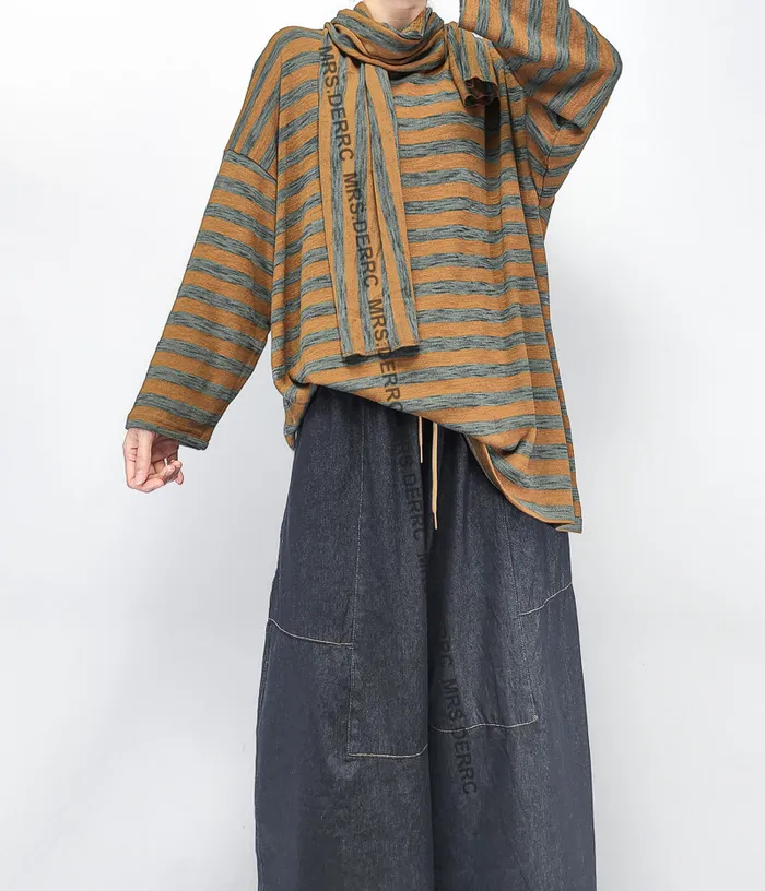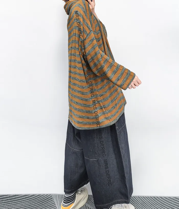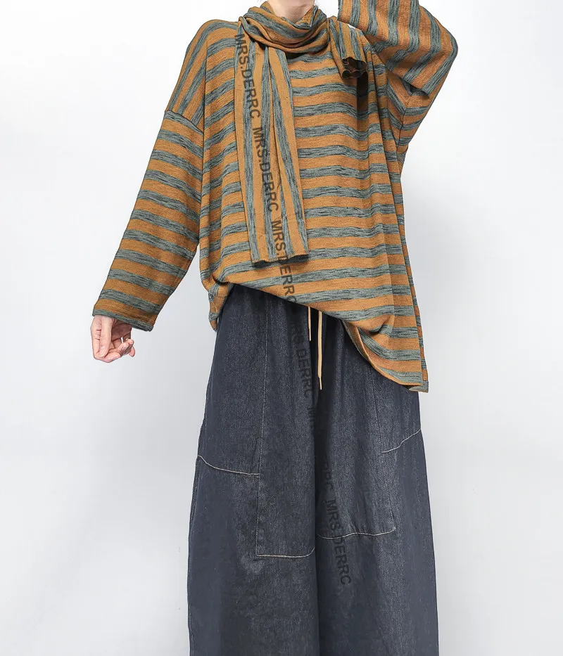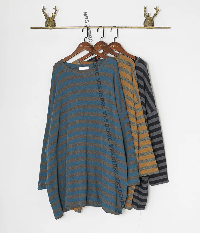 棉混紡軟料垂墜條紋寬鬆上衣(黃綠條)