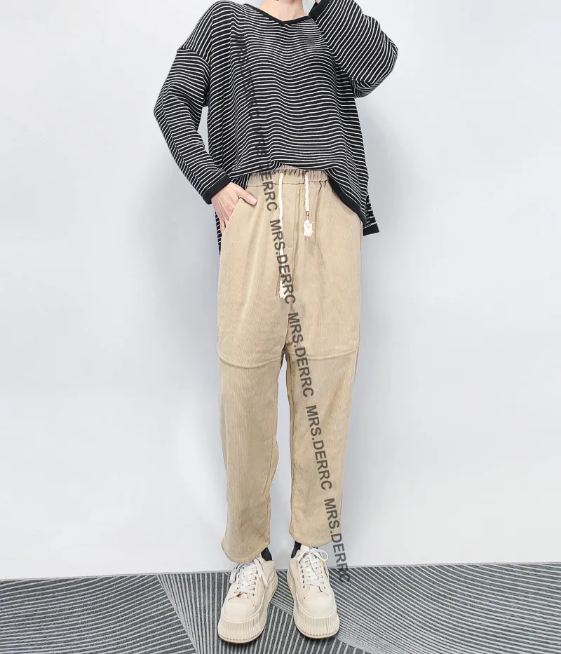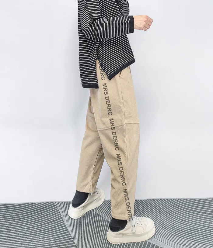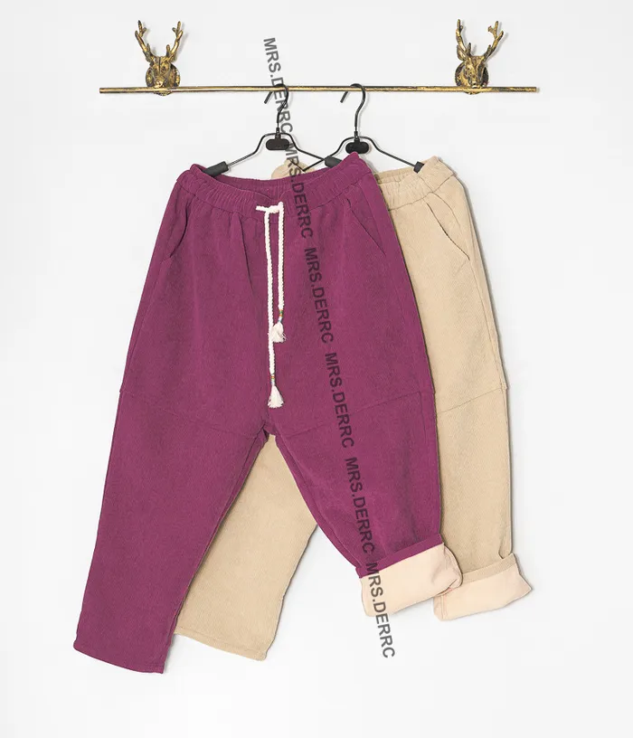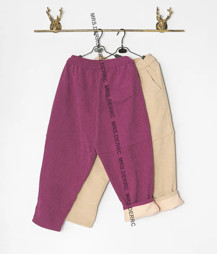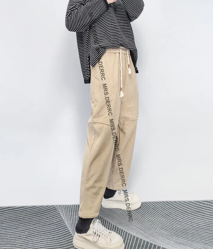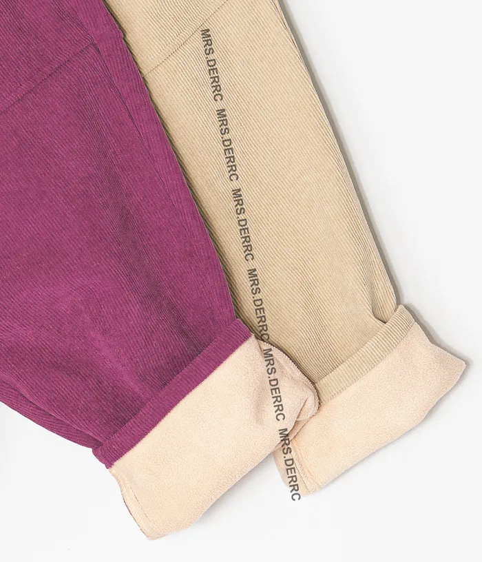 棉混紡條絨內磨毛抽繩口袋褲(卡其)