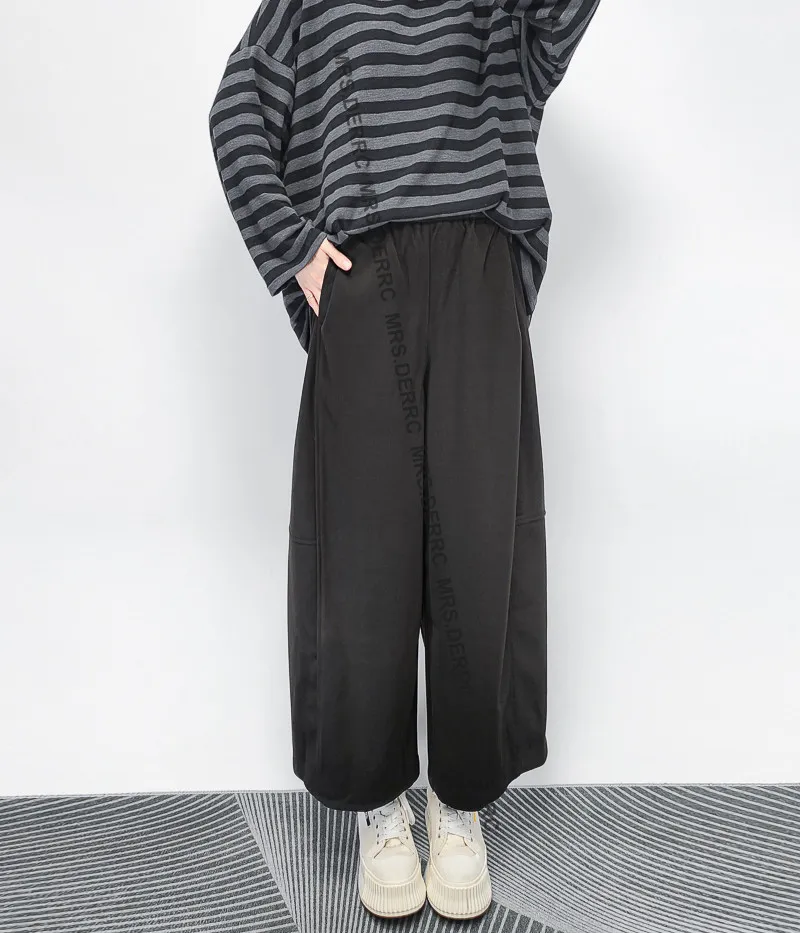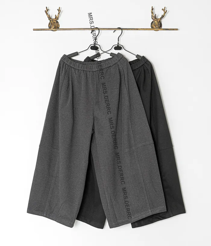 棉混紡鬆緊腰剪裁口袋褲(黑色)