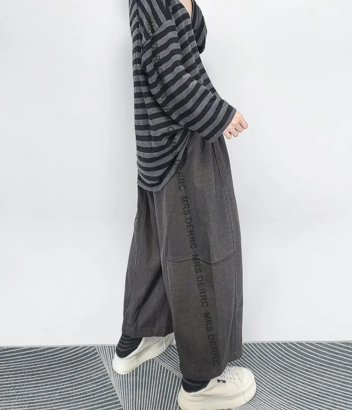 棉混紡鬆緊腰剪裁口袋褲(灰色)