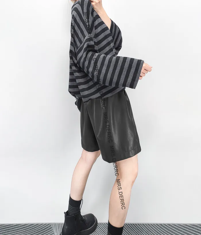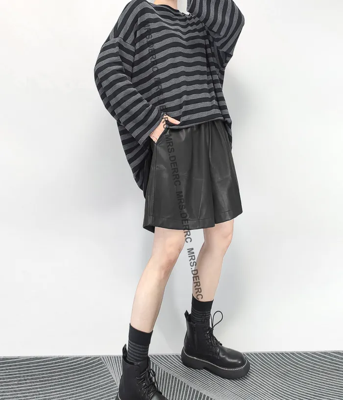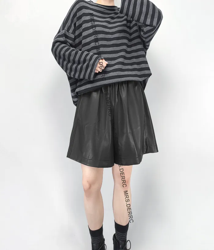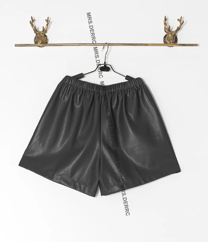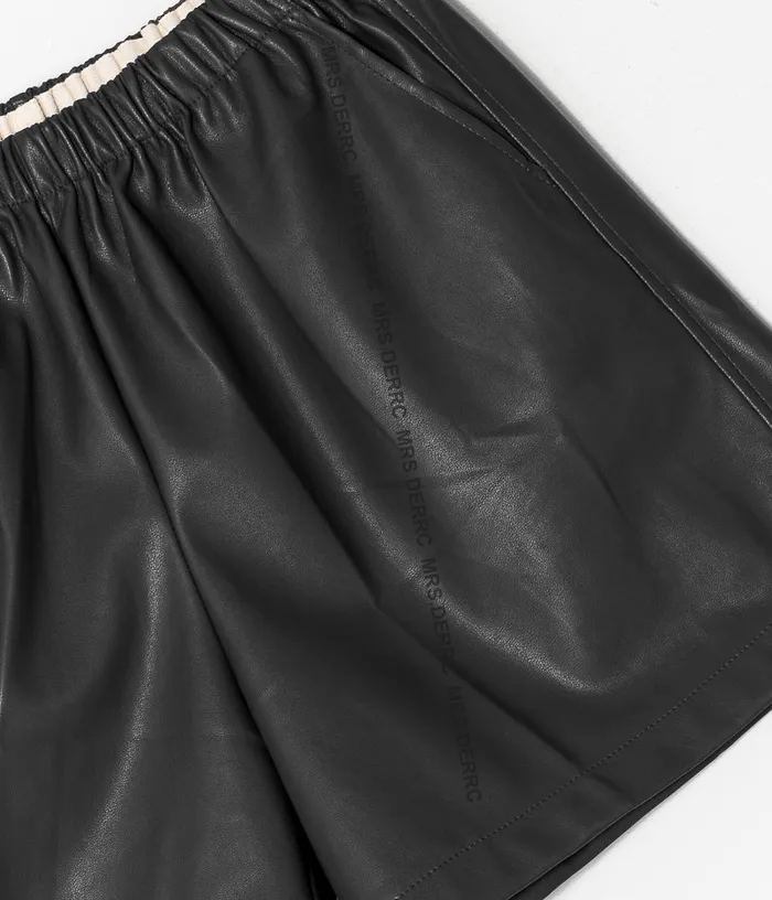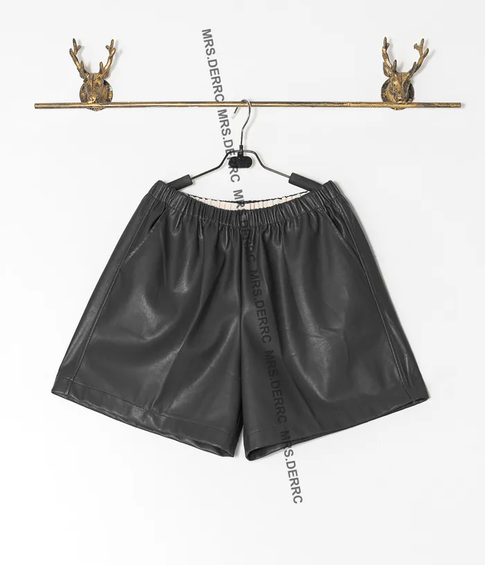 (預購)PU皮鬆緊腰寬鬆口袋短褲(黑色)