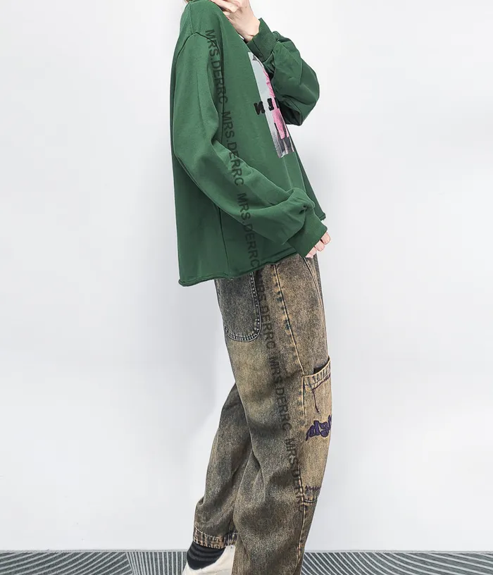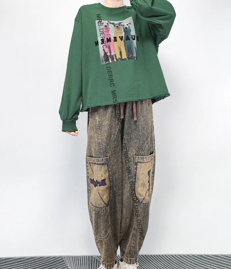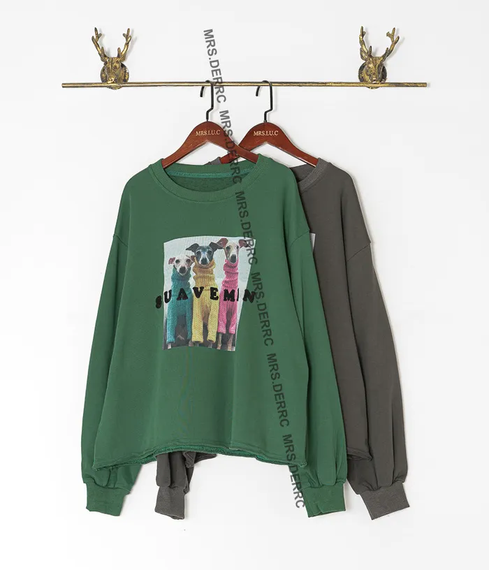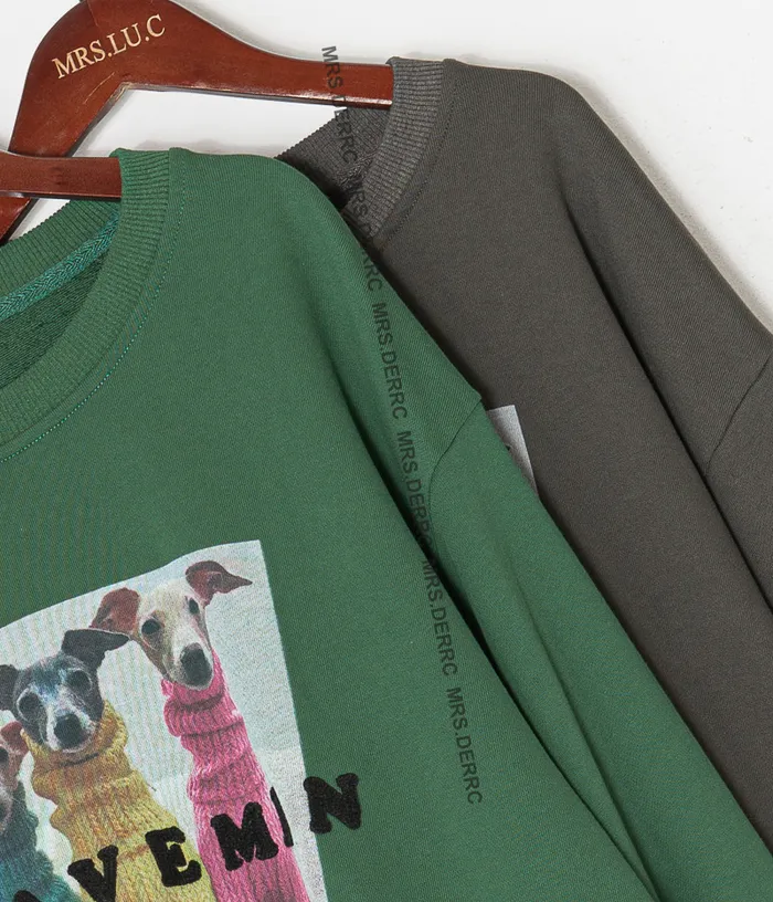 棉質繽紛毛衣小狗字母捲邊上衣(綠色)