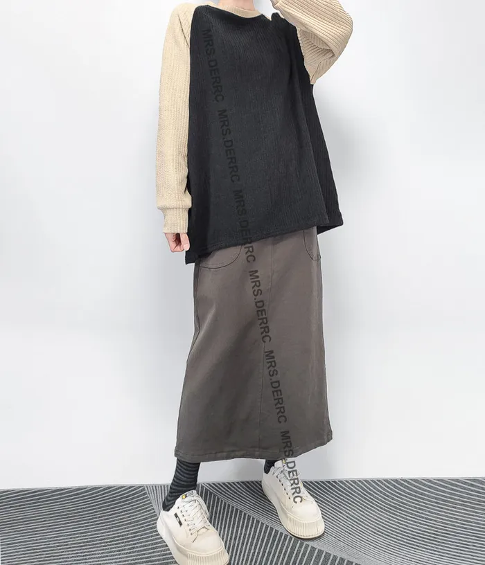 棉混紡坑條撞色拚袖側口袋上衣(黑色)