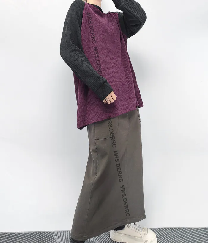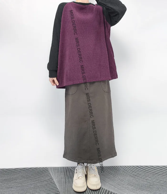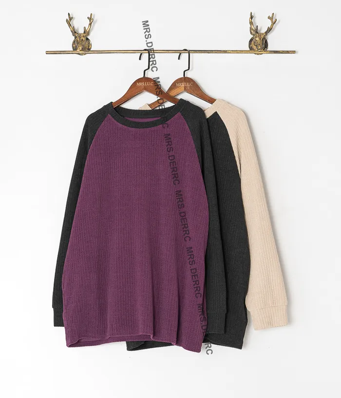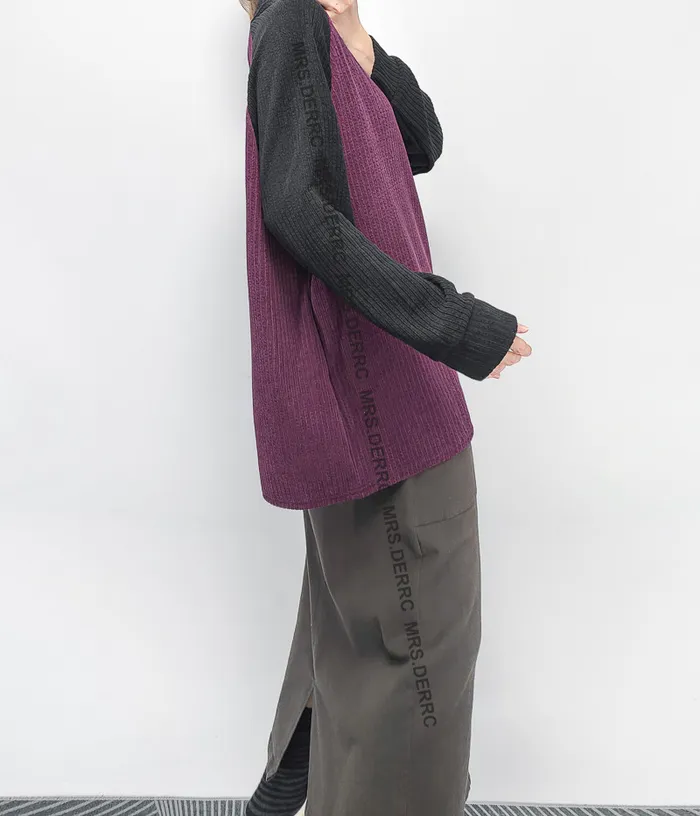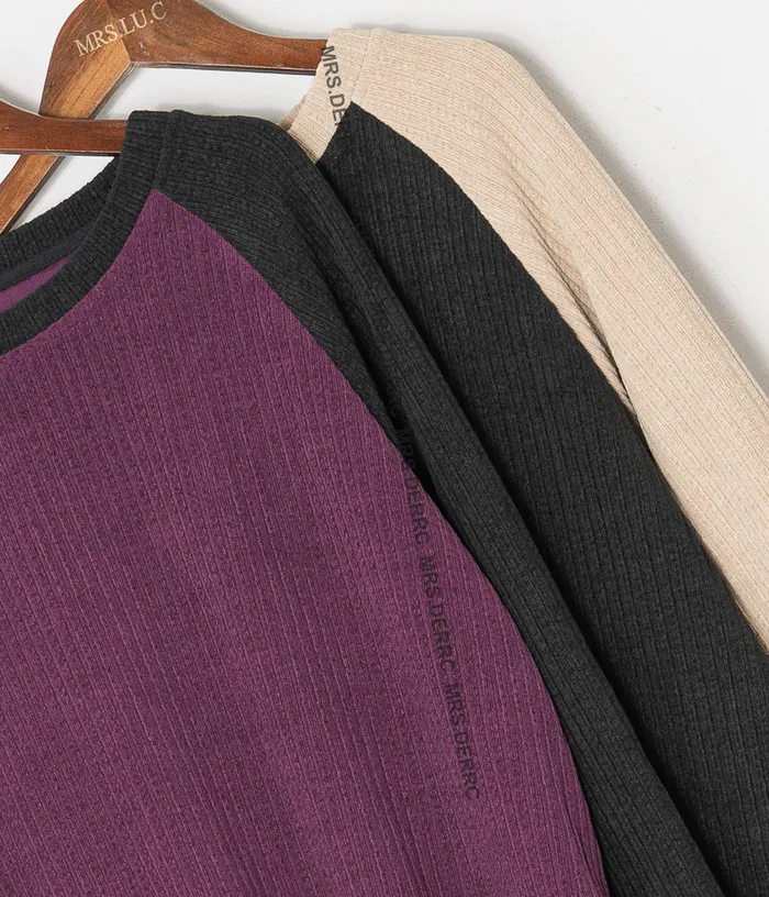 棉混紡坑條撞色拚袖側口袋上衣(紫色)