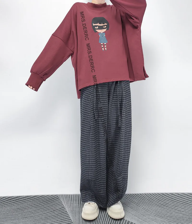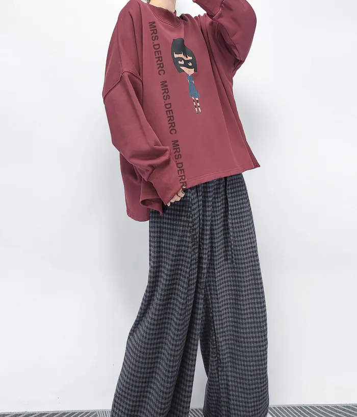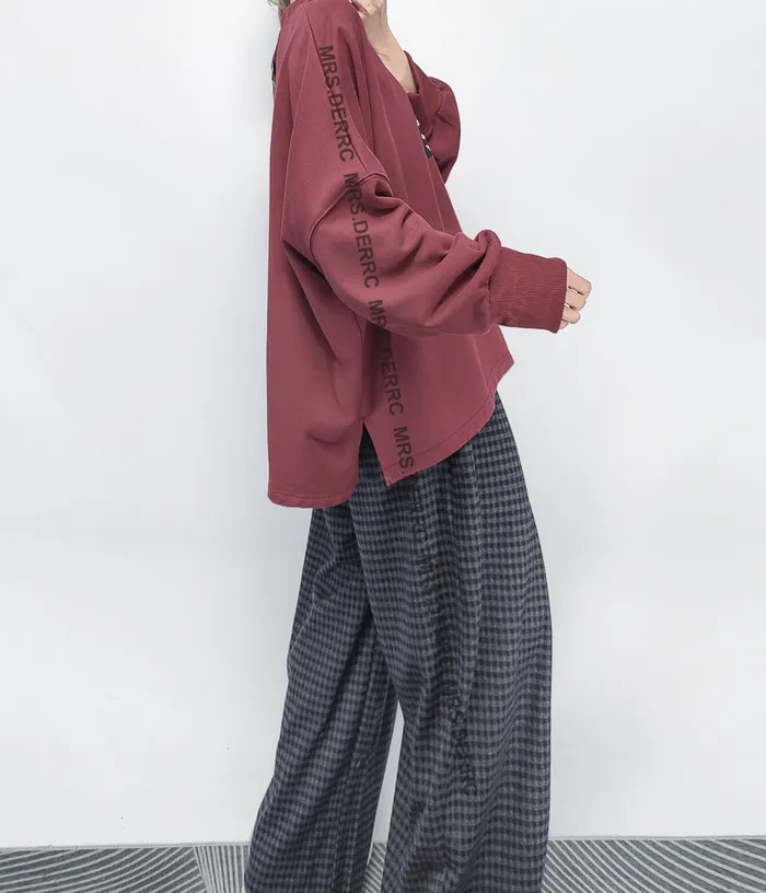 棉質立領眼罩女孩寬鬆上衣(酒紅)