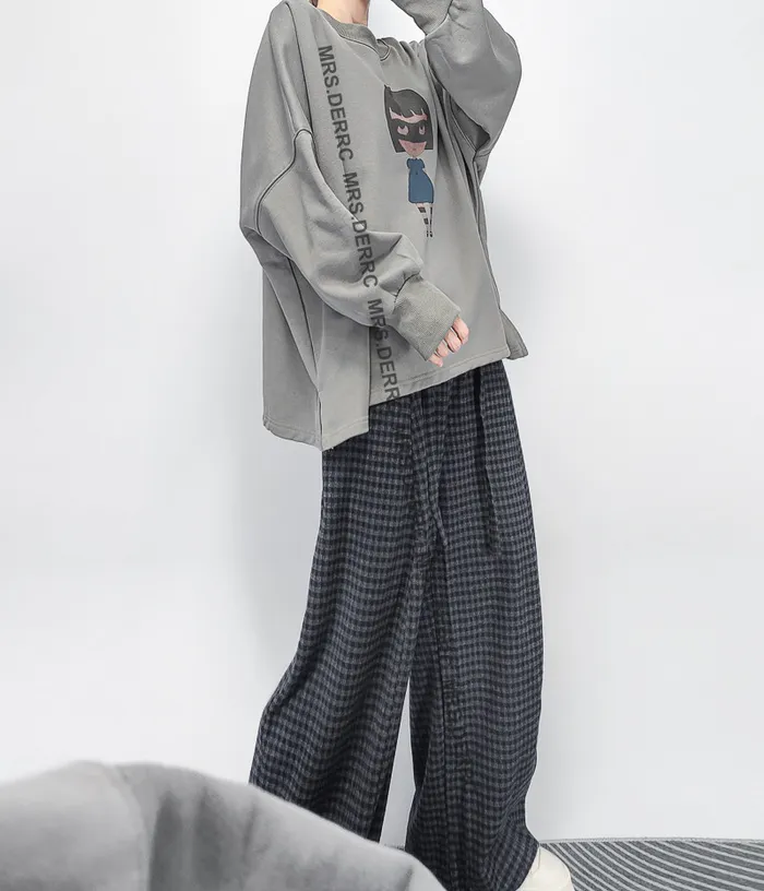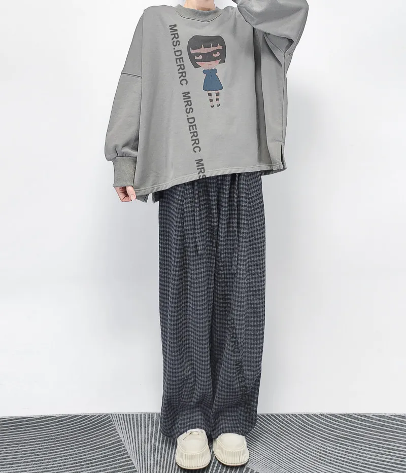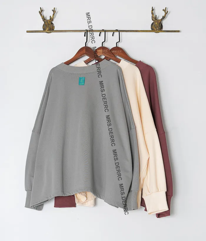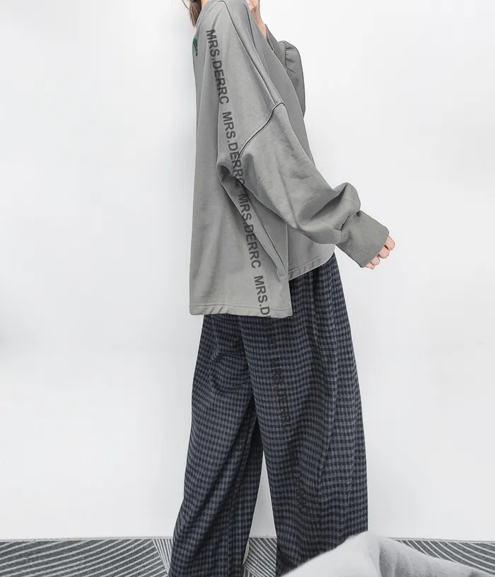 棉質立領眼罩女孩寬鬆上衣(灰色)