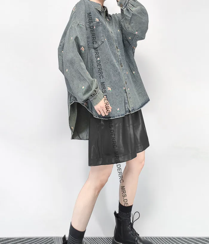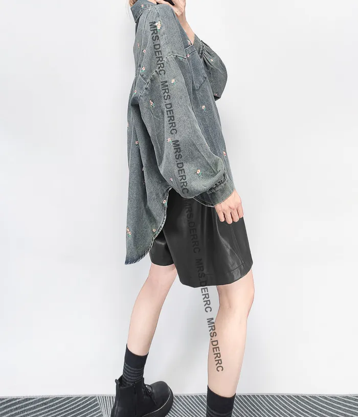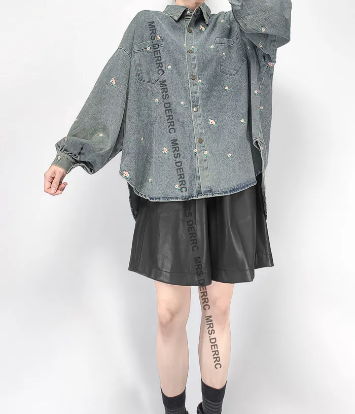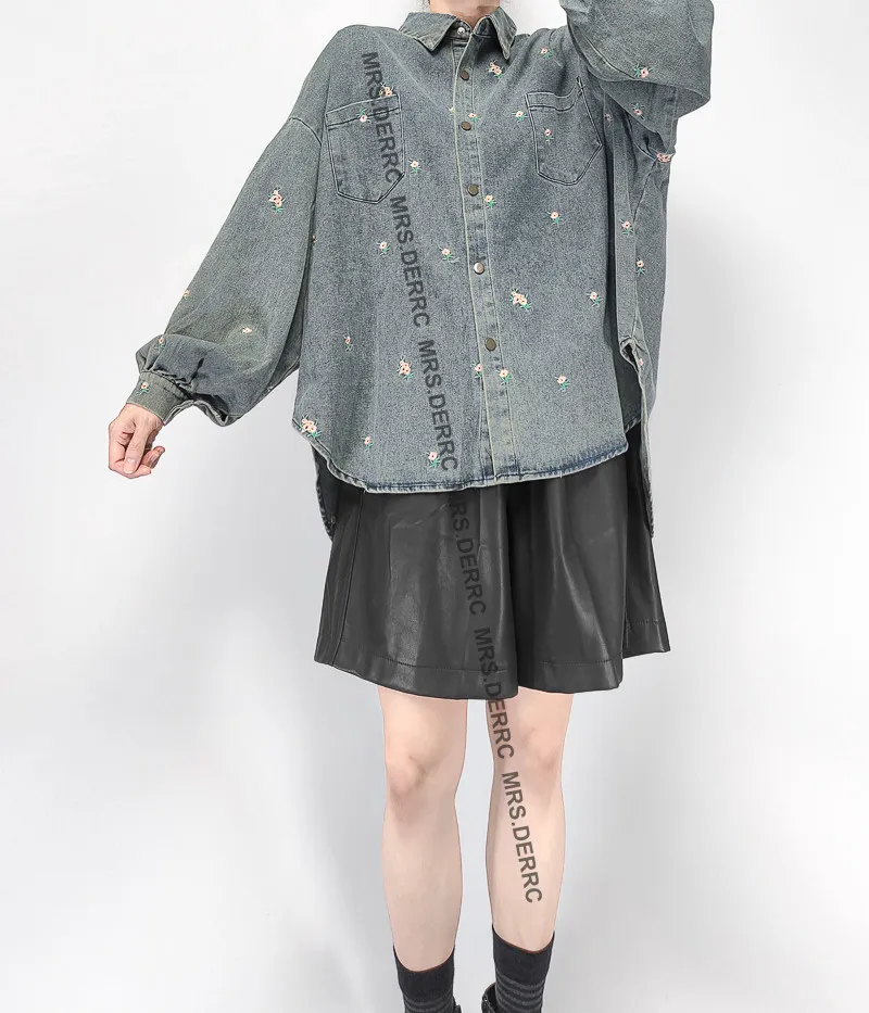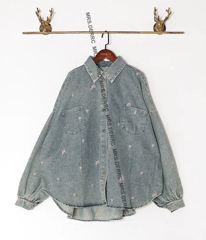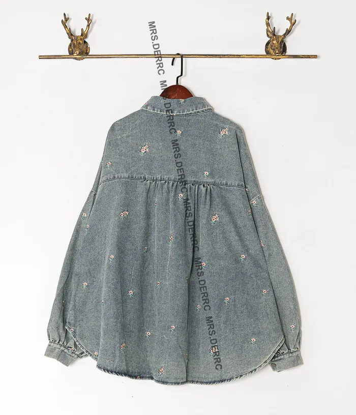 挺布水洗牛仔刺繡小花口袋襯衫-12/24到貨後出貨