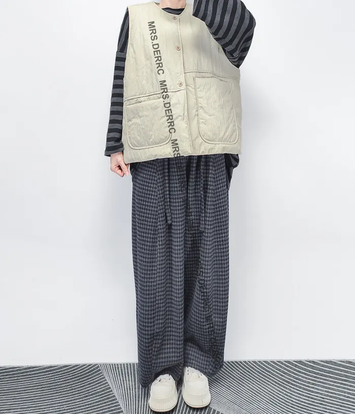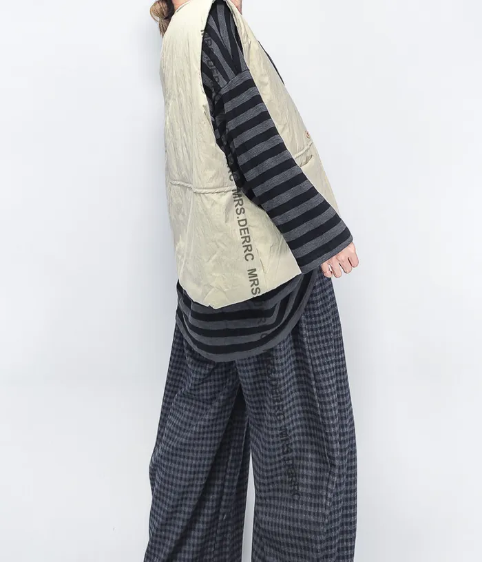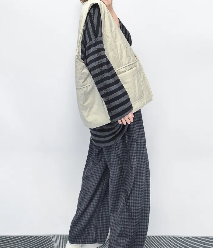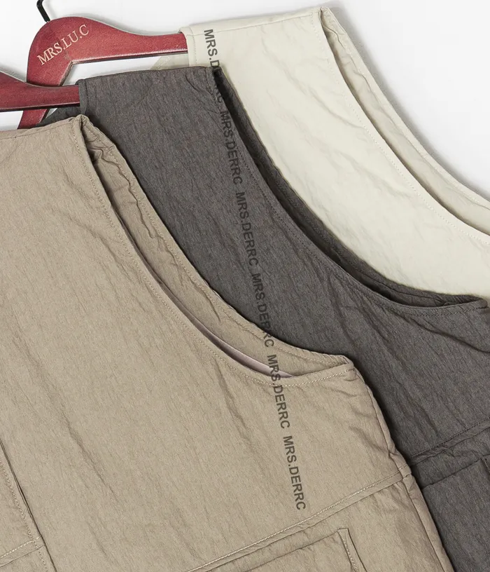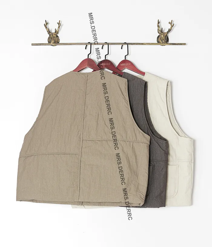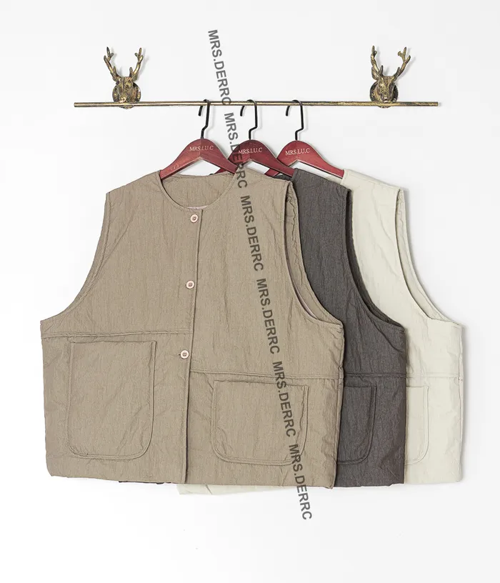棉混紡鋪棉大小口袋開釦背心(杏色)
