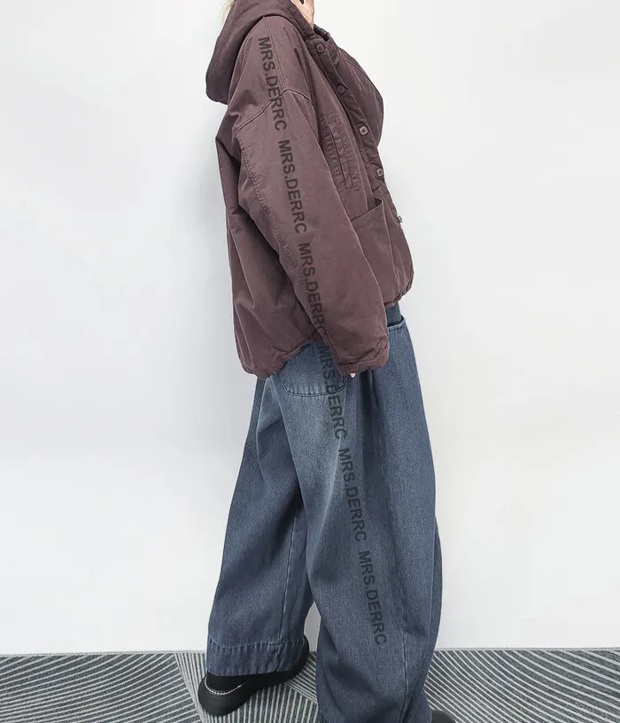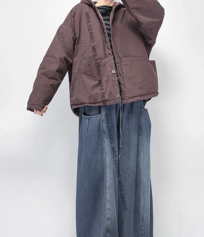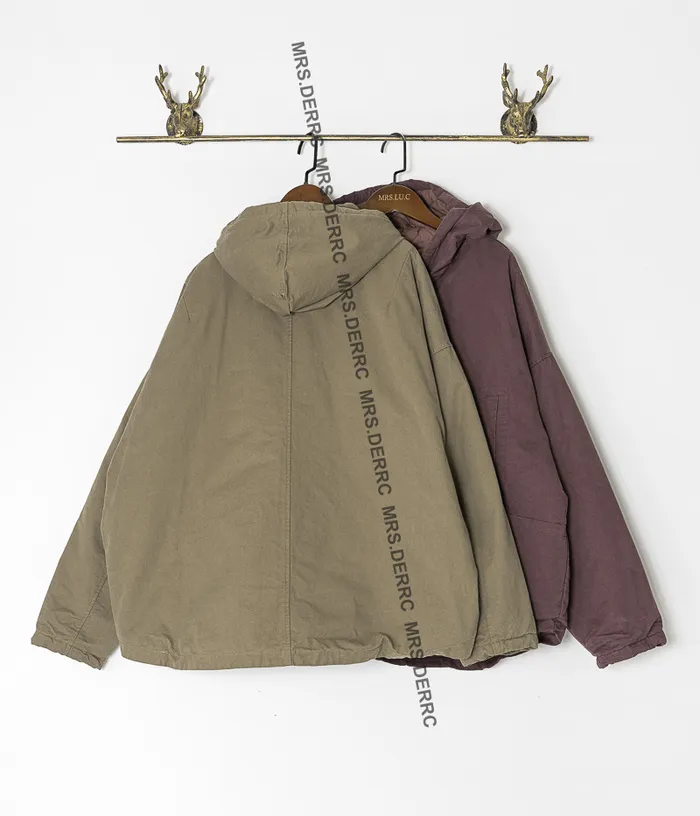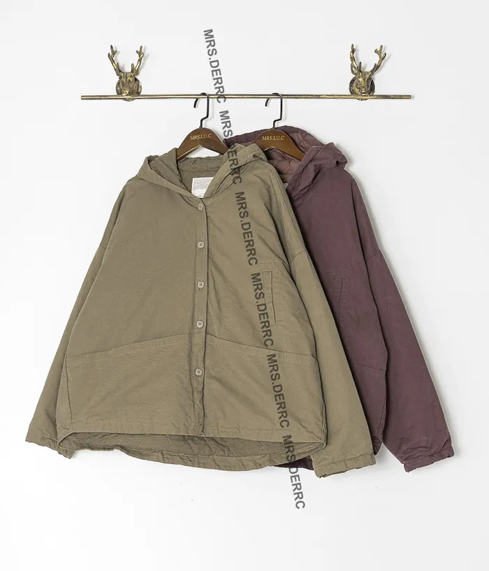 棉質連帽鋪棉多口袋開釦外套(水洗紫)