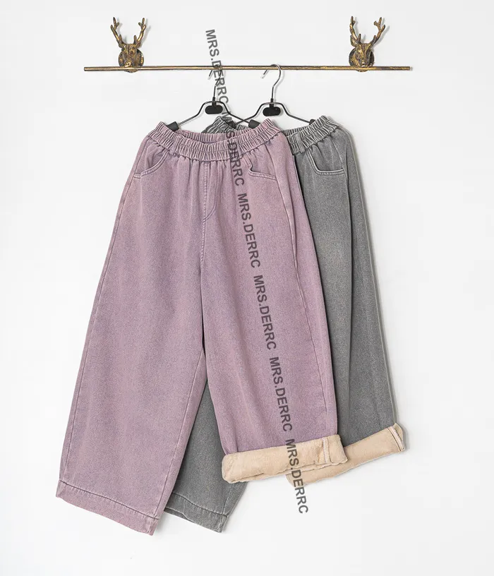 棉混紡水洗內磨毛挺布休閒口袋褲(灰色)