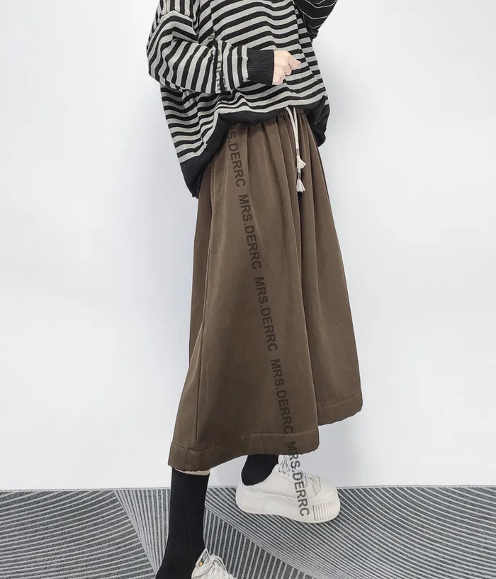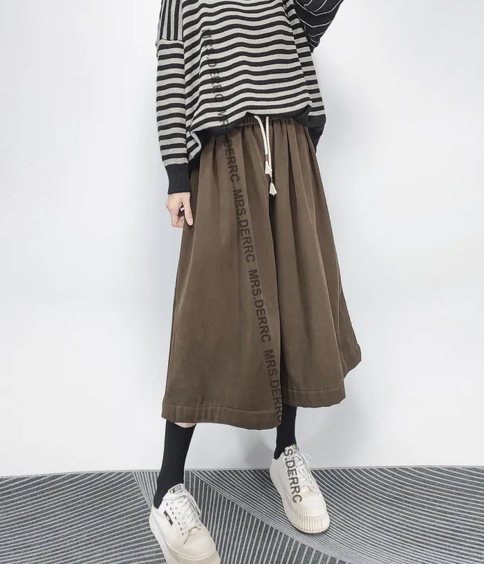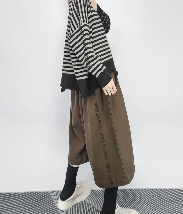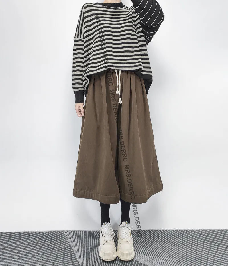 棉混紡內磨毛挺布抽繩口袋七分寬褲(咖色)