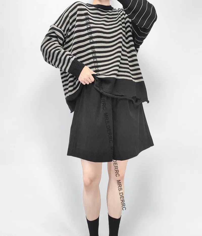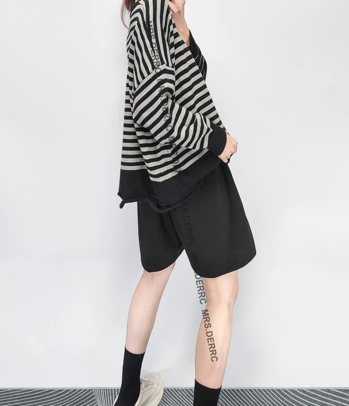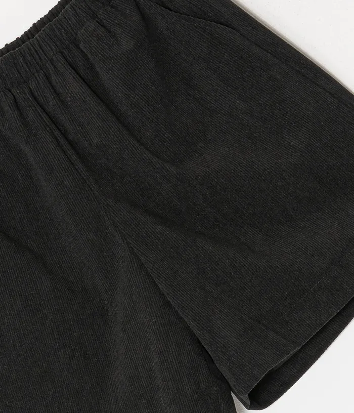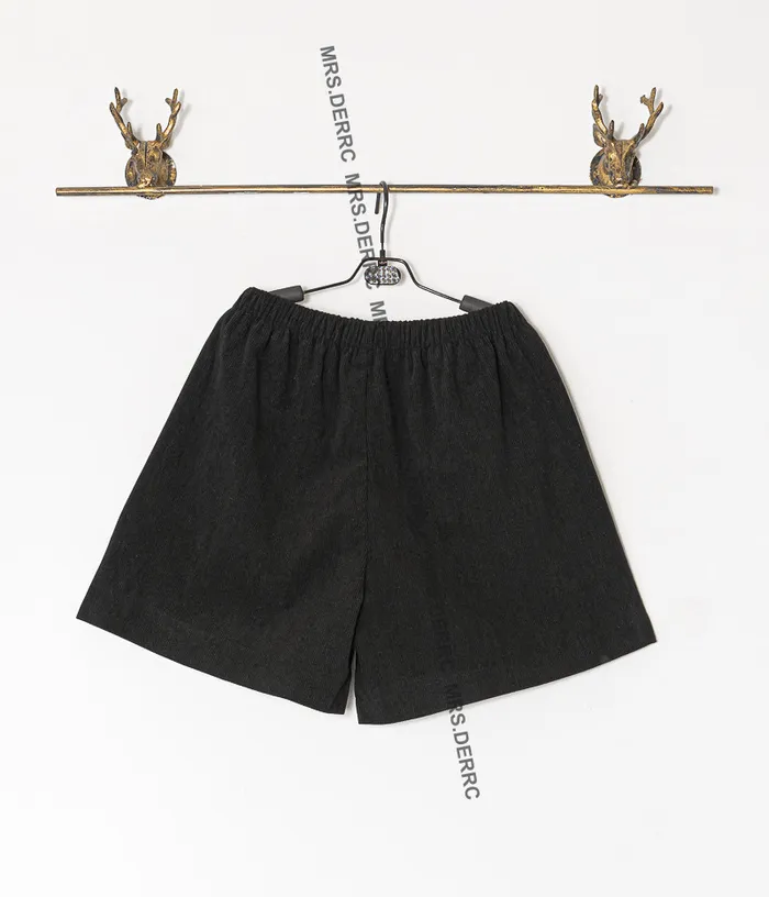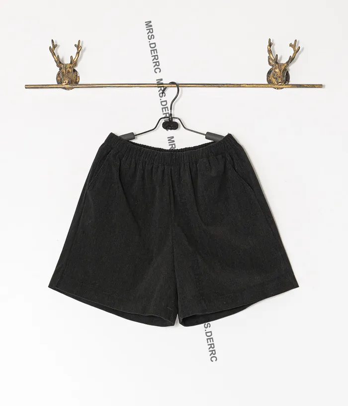 棉混紡直條絨寬鬆口袋短褲(黑色)