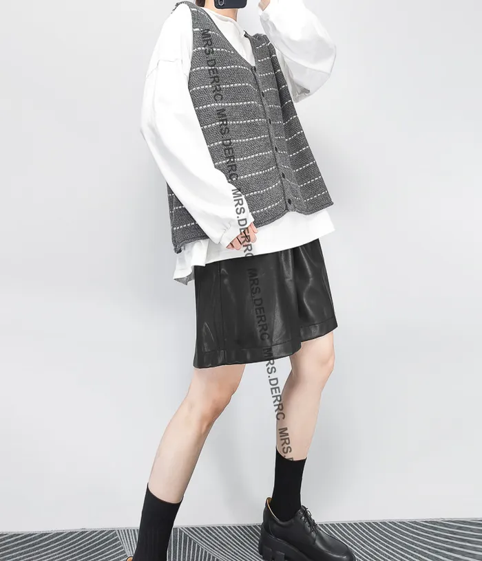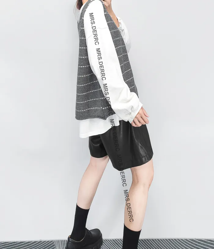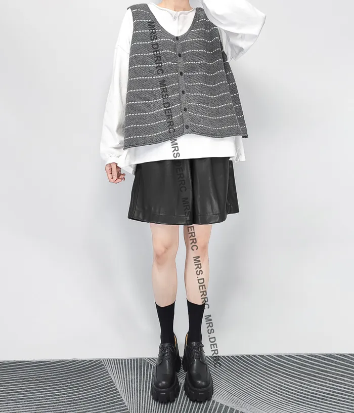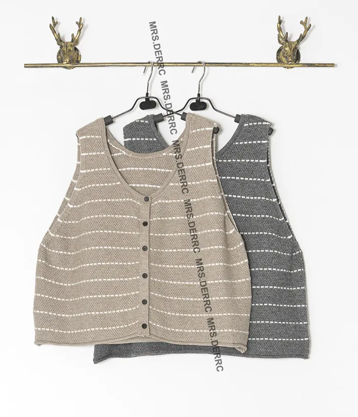針織白條開釦背心(灰色)