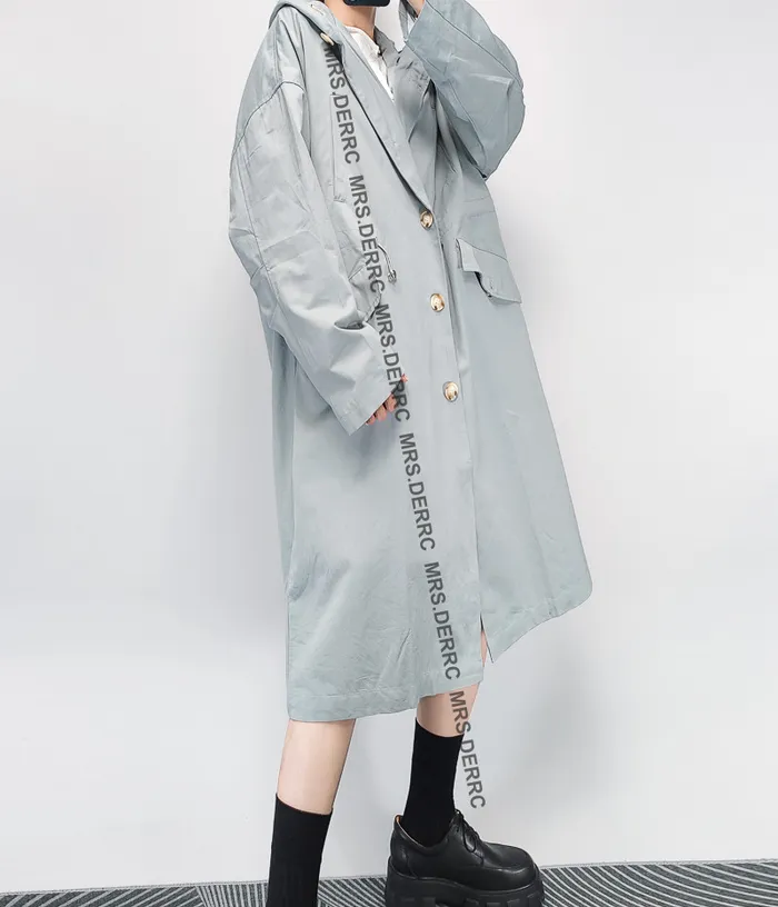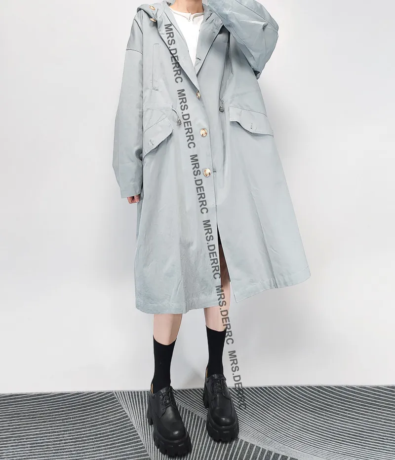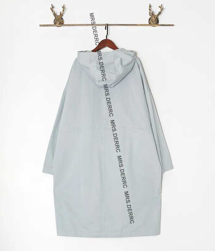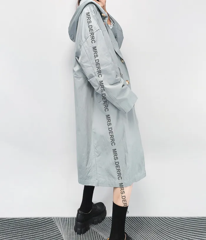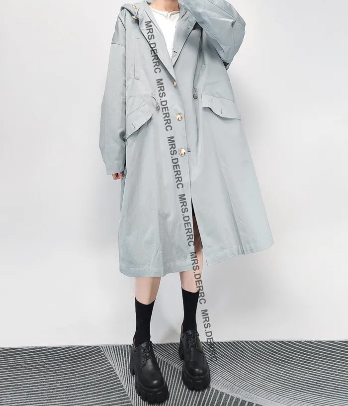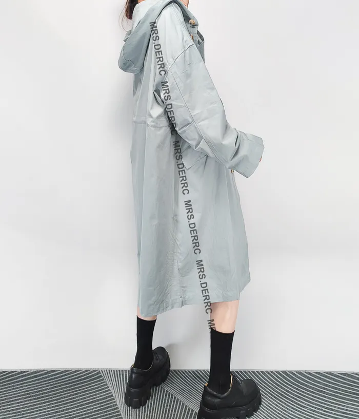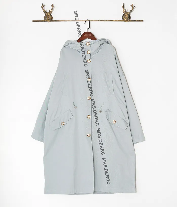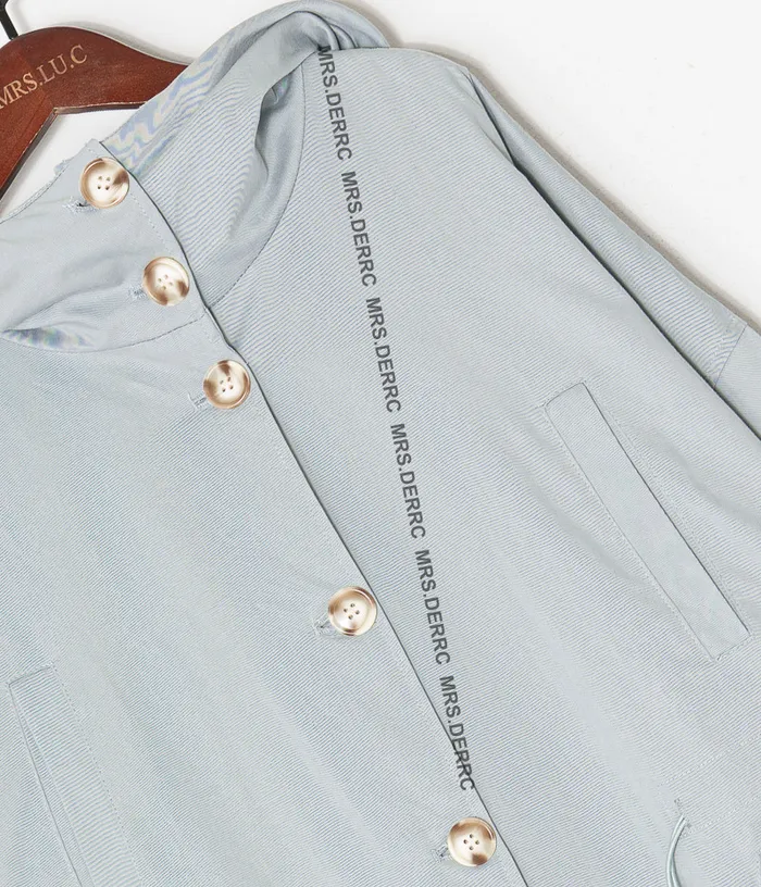 斜紋布連帽開釦腰抽繩寬鬆口袋外套(淺藍)