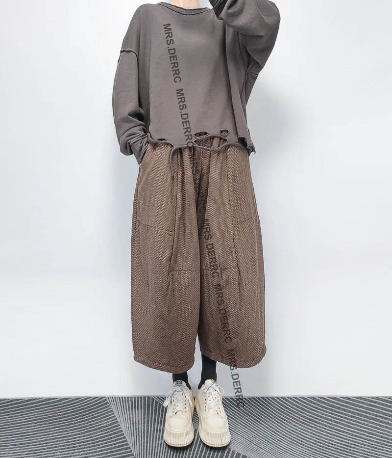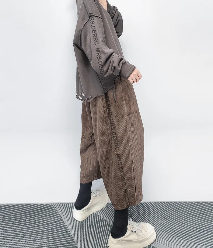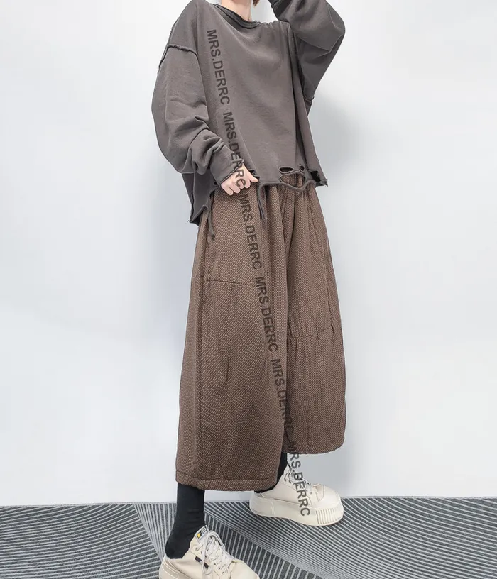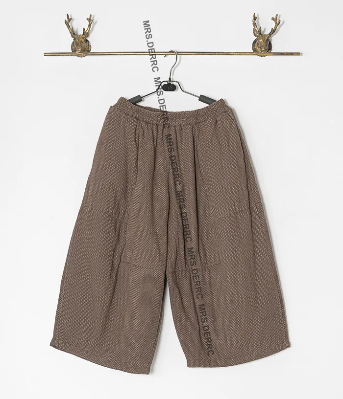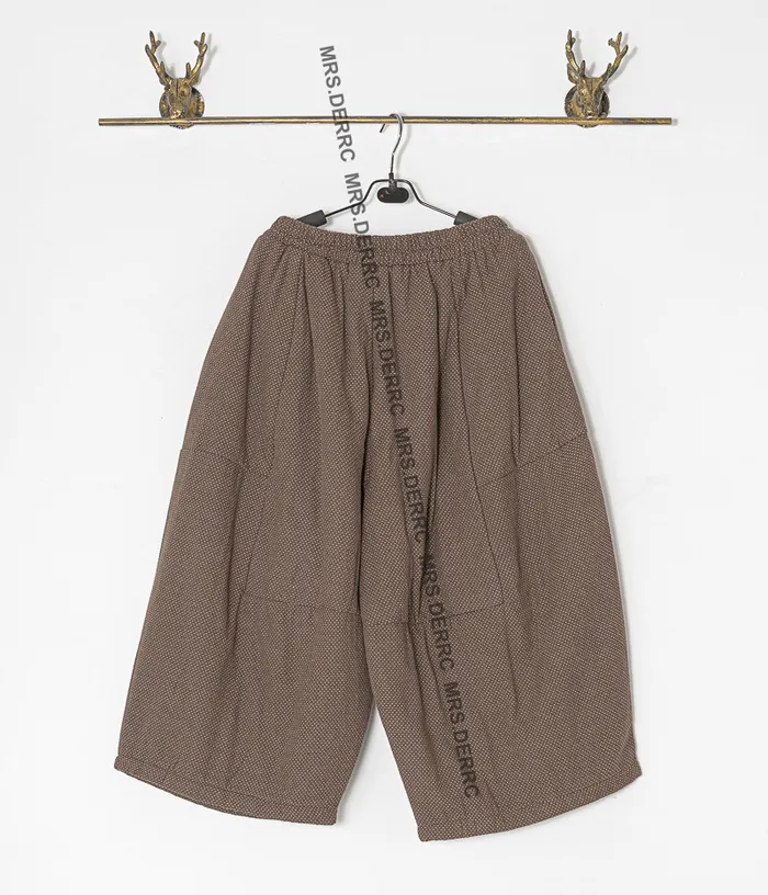 鋪棉鬆緊腰小細點拼接口袋褲(咖色)