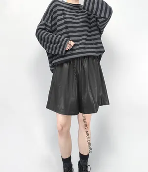 PU皮鬆緊腰寬鬆口袋短褲(黑色)