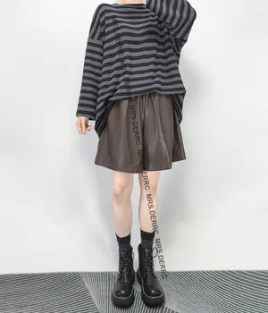 PU皮鬆緊腰寬鬆口袋短褲(咖色)