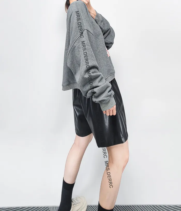 PU皮鬆緊腰寬鬆口袋短褲(黑色)