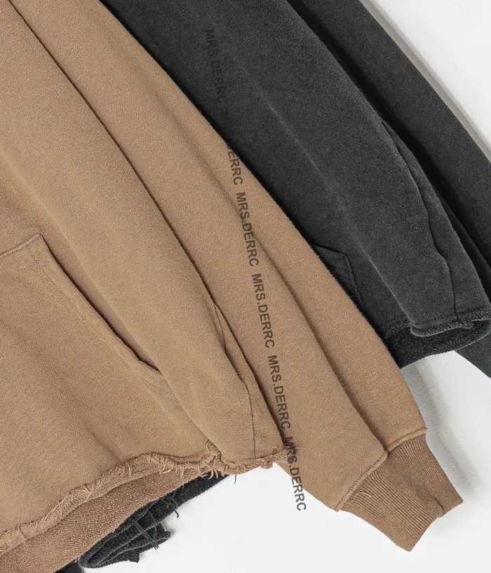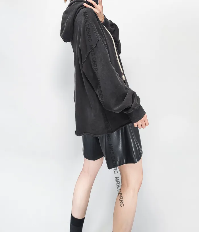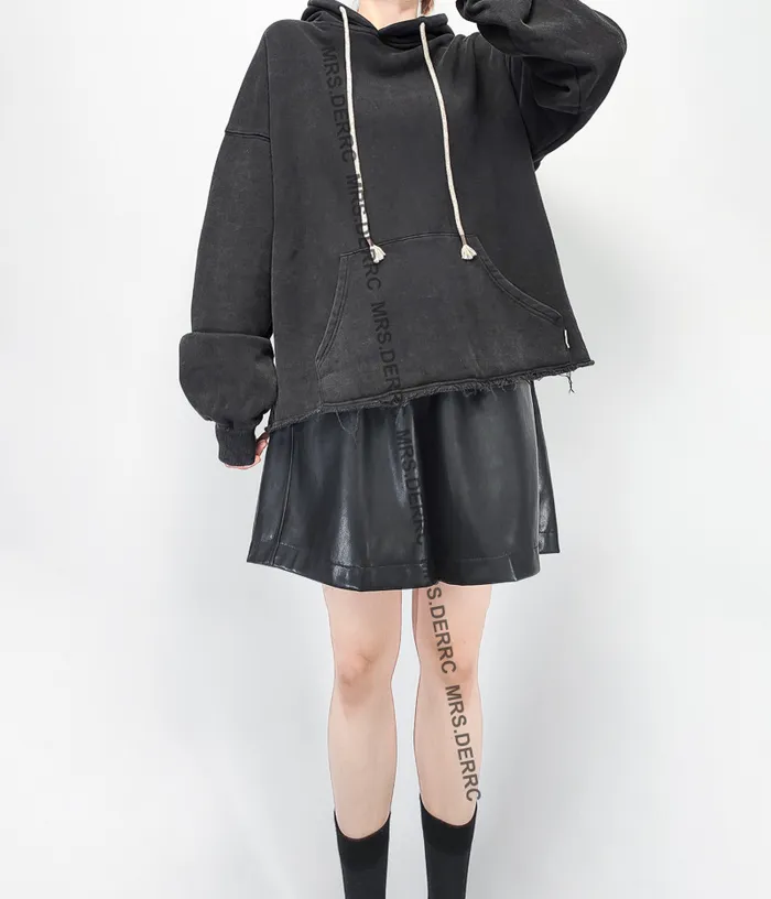 棉質水洗連帽肚子口袋捲邊上衣(黑色)