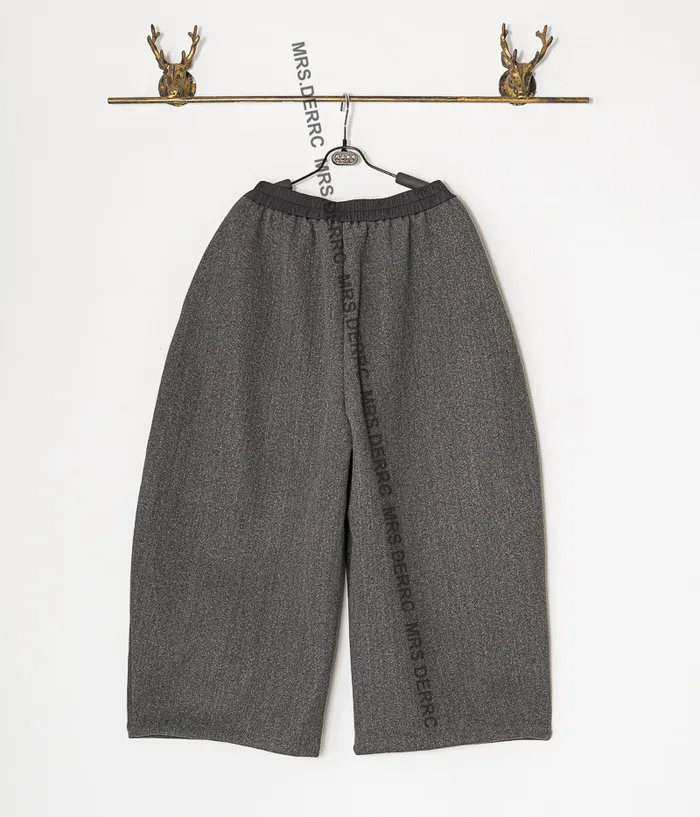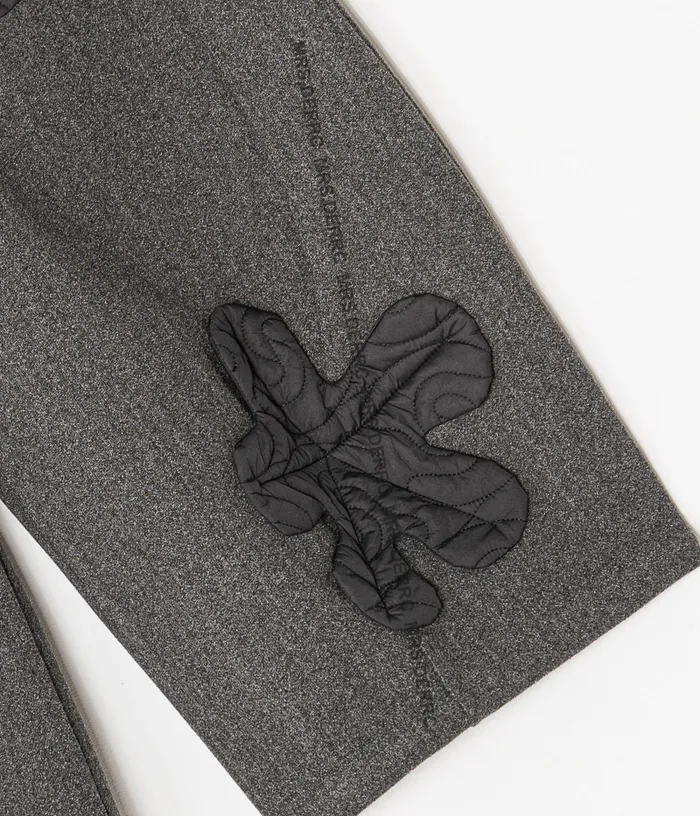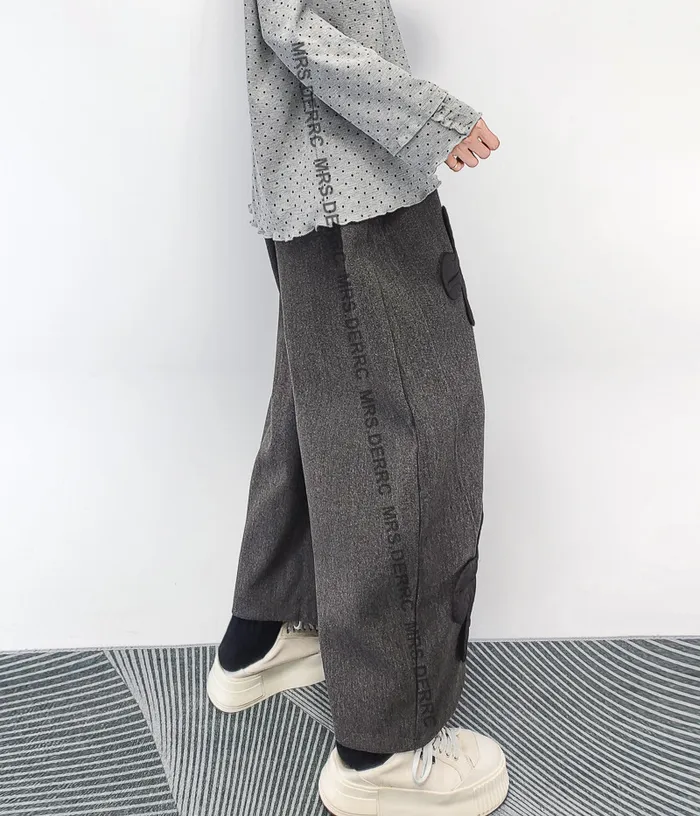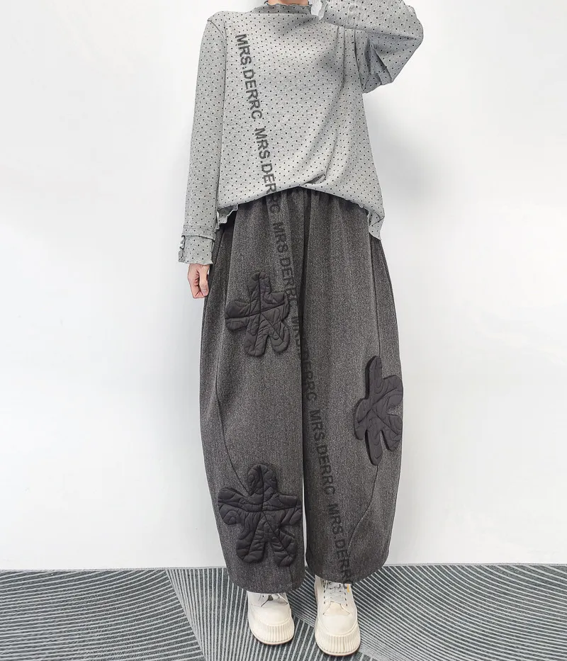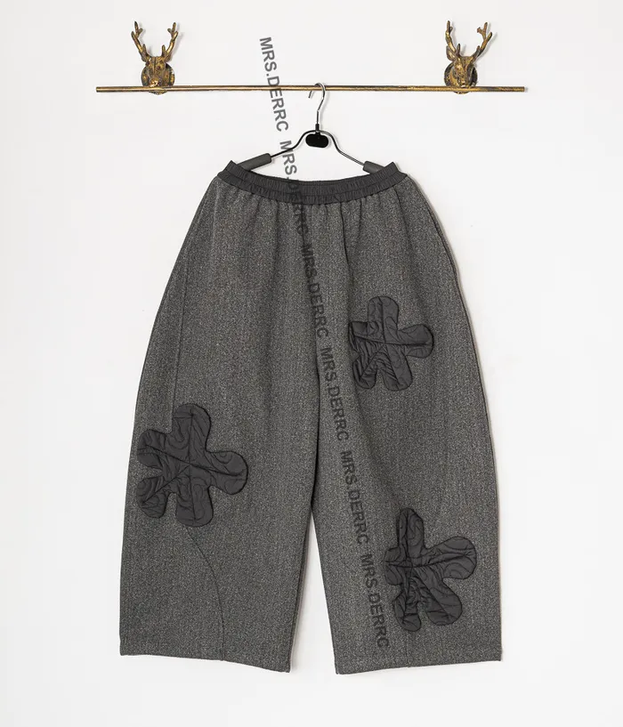 棉混紡挺布毛呢立體花朵口袋寬褲(灰色)